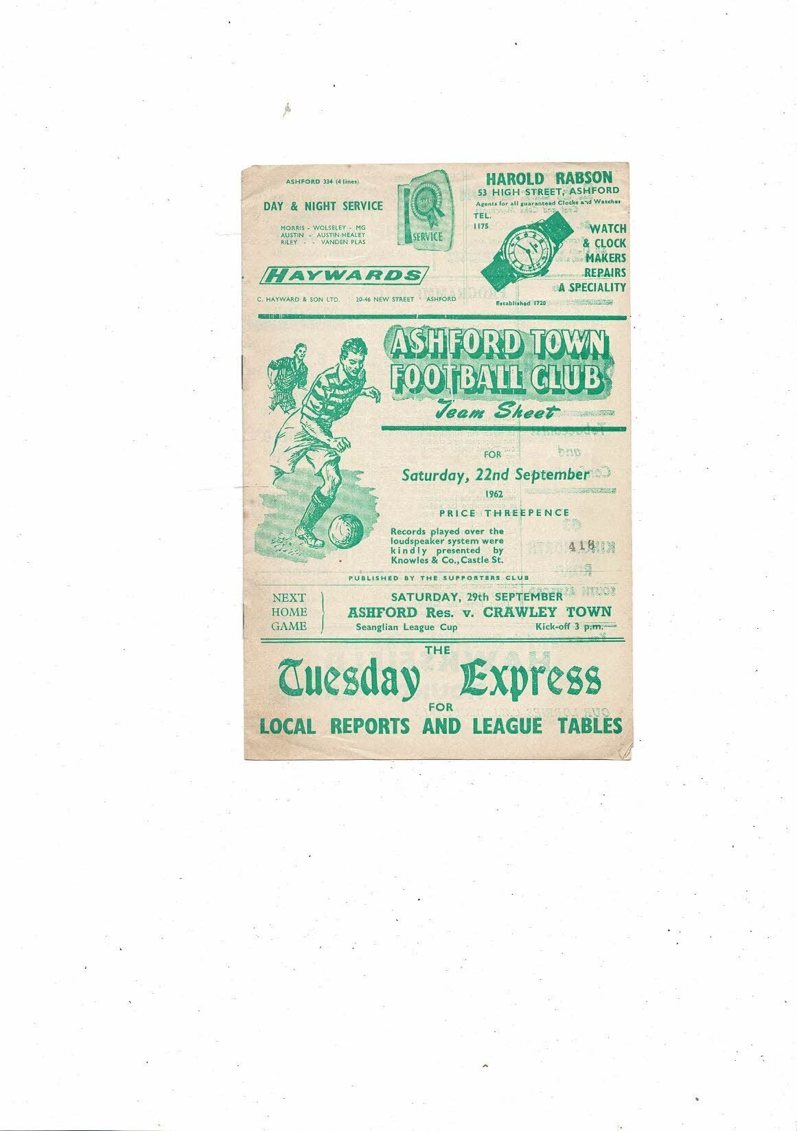 1962/63 Ashford Town v Margate Southern League Football Programme