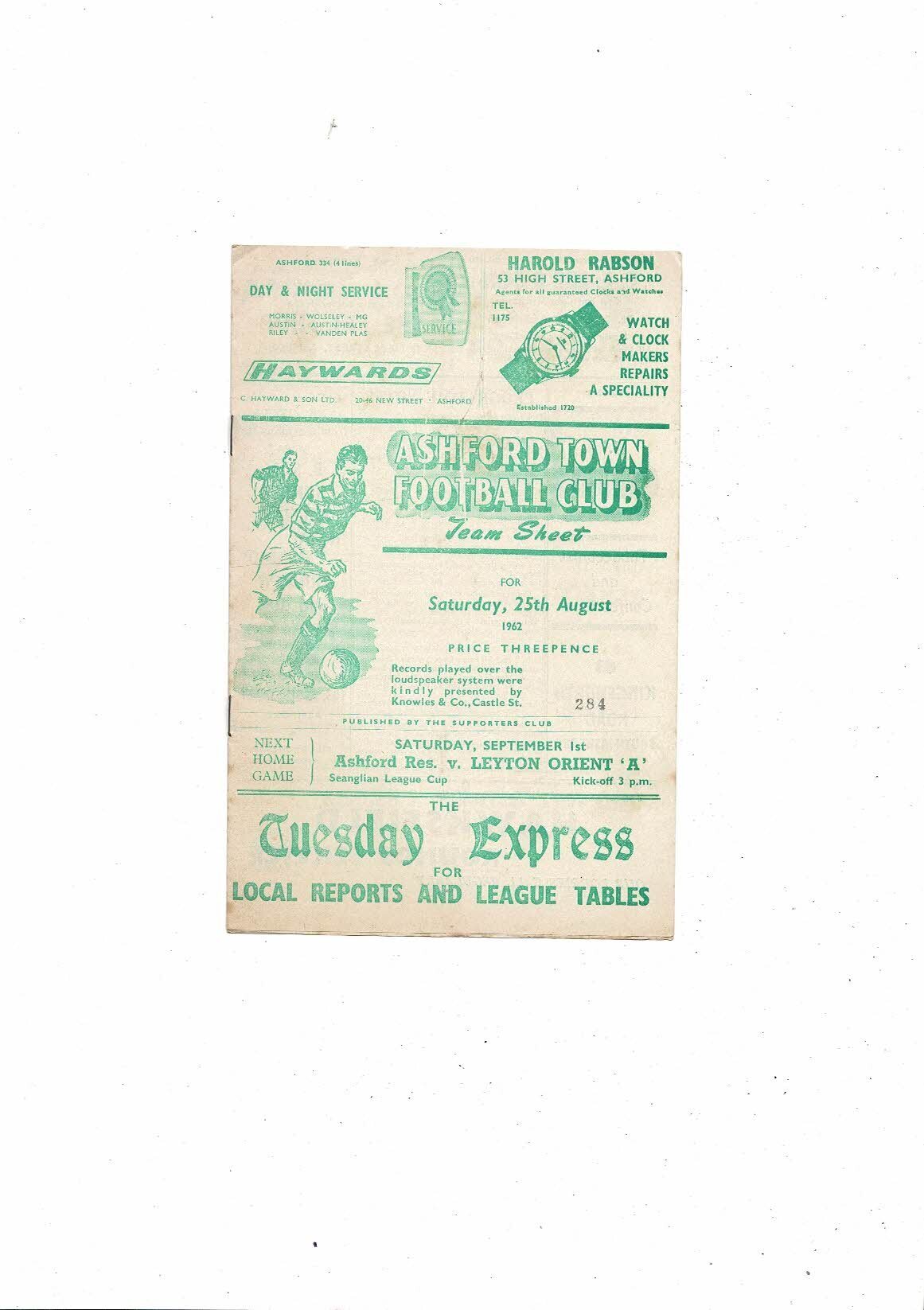 1962/63 Ashford v Yiewsley Southern League Football Programme