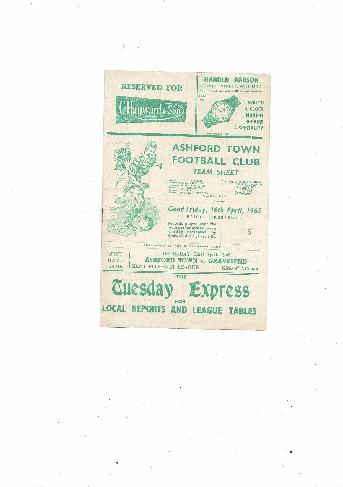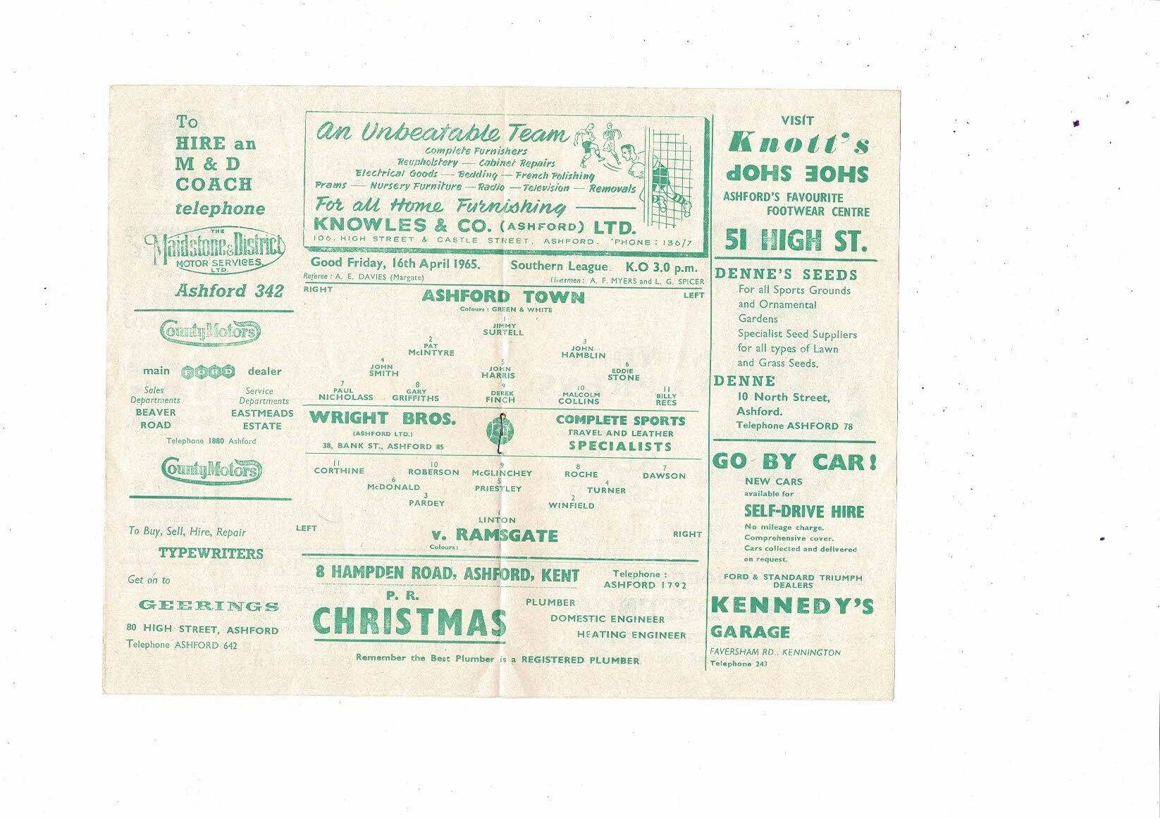 1964/65 Ashford Town v Ramsgate Southern League Football Programme