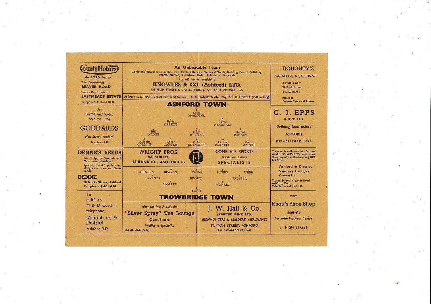 1965/66 Ashford Town v Trowbridge Town Southern League Football Programme