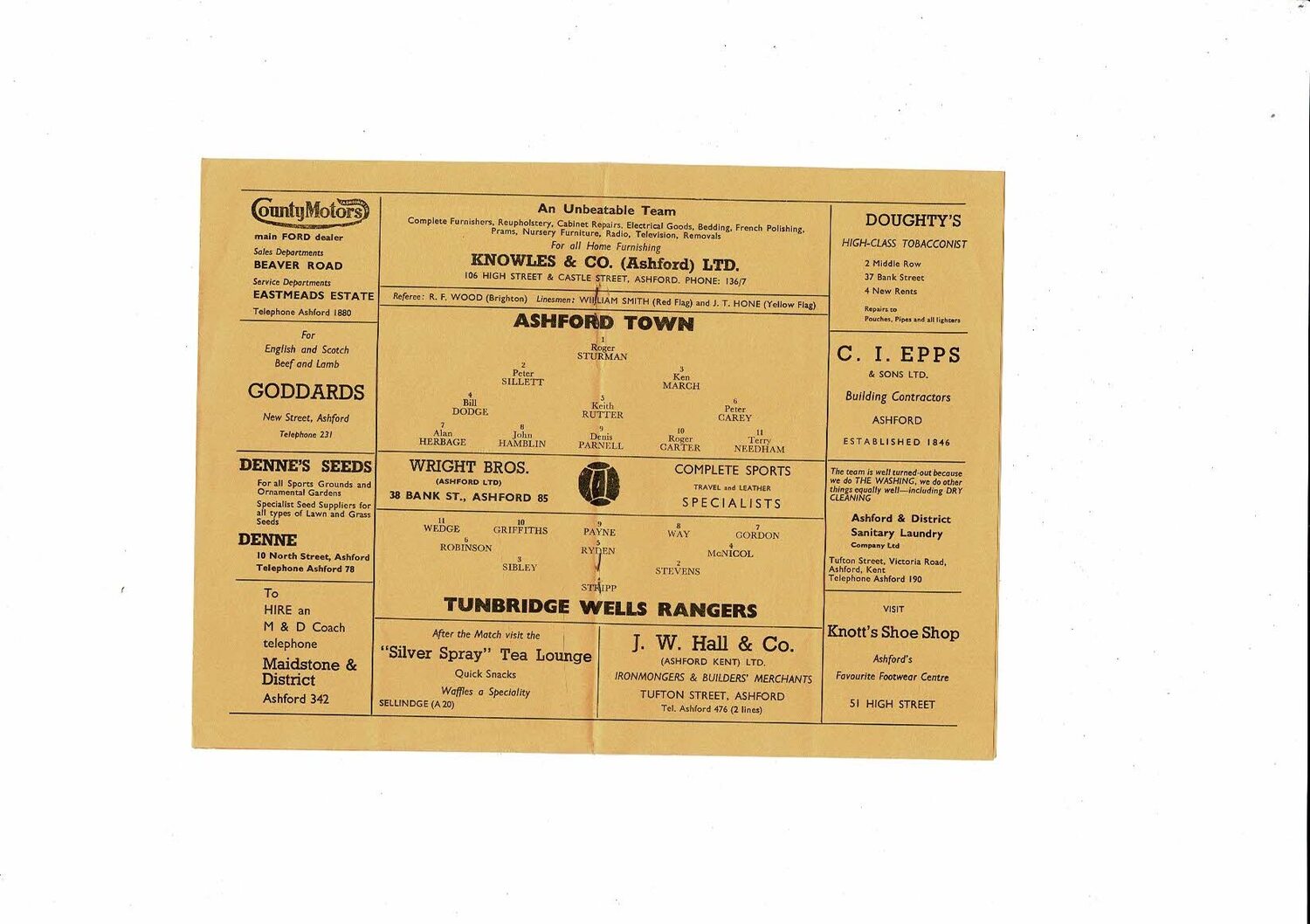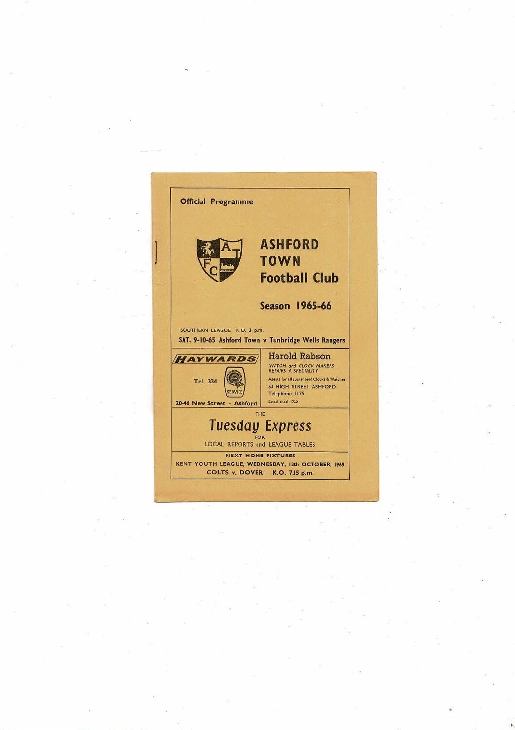 1965/66 Ashford Town v Tunbridge Wells Rangers Southern League Football Programme