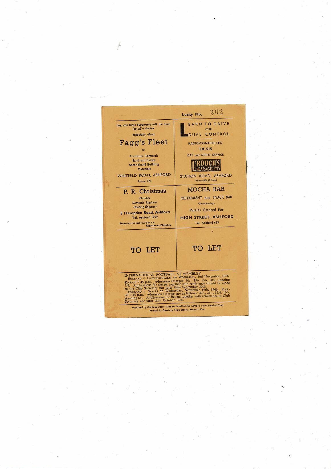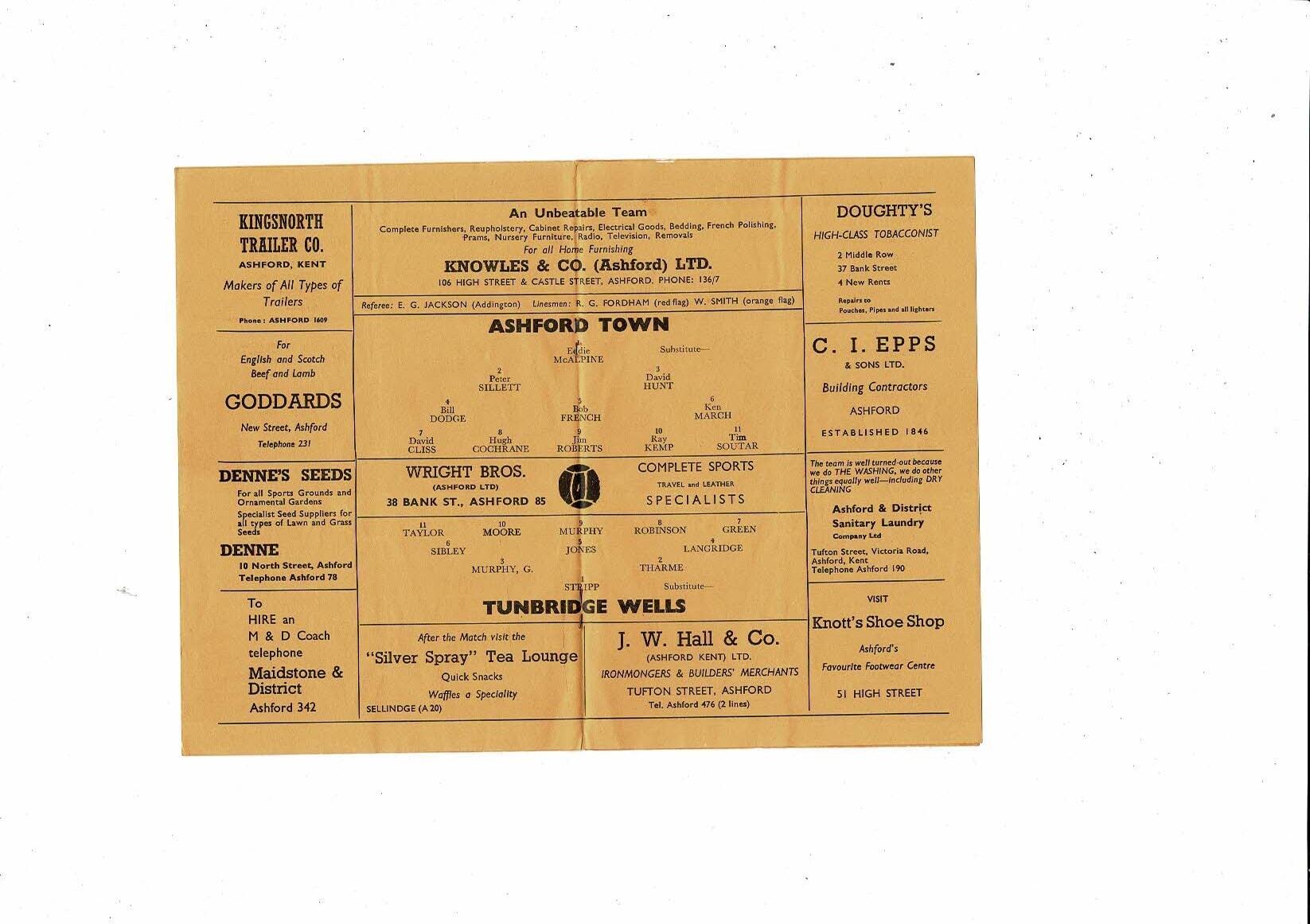 1966/67 Ashford Town v Tunbridge Wells Rangers Southern League Programme