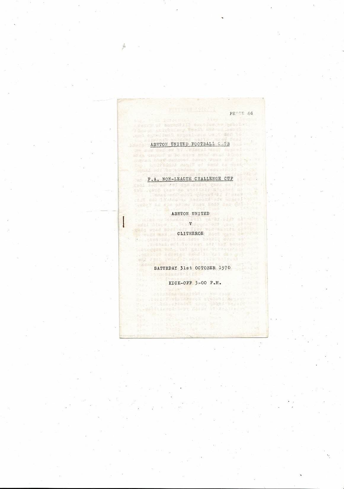 1970/71 Ashton United v Clitheroe Non League Challenge Cup Football Programme
