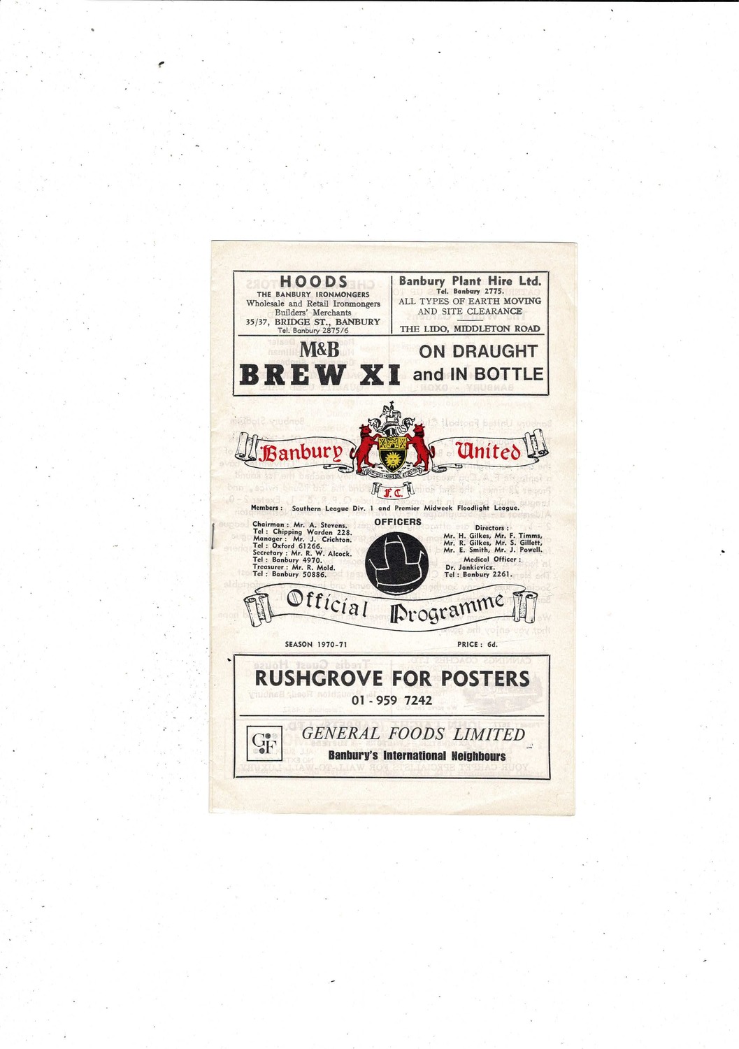 Banbury United v Hereford Town FA Trophy Football Programme 1970/71