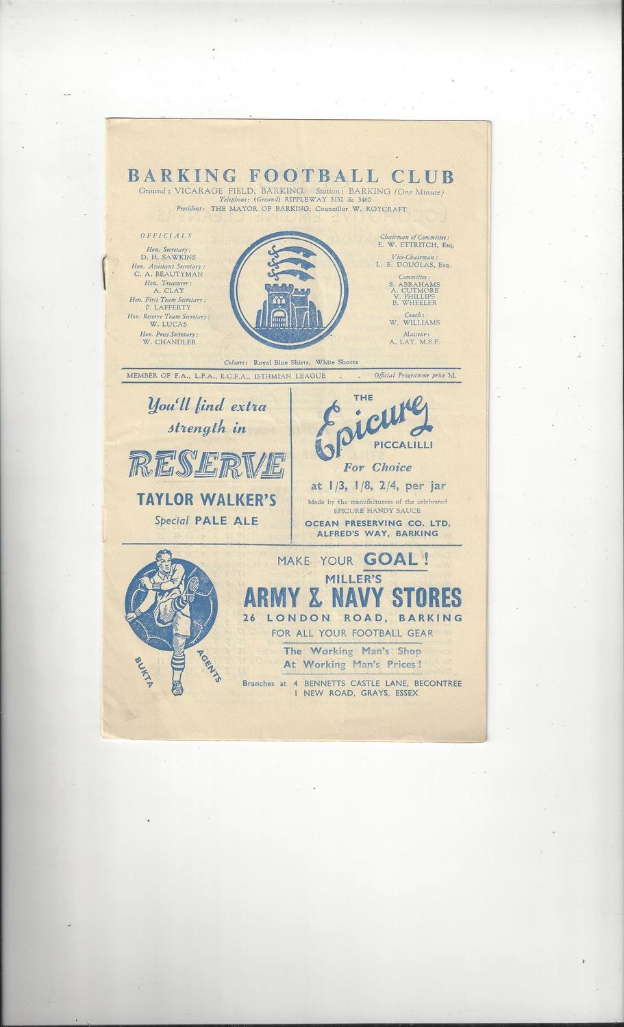 1957/58 Barking v Harwich & Parkeston Essex Senior Cup Football Programme