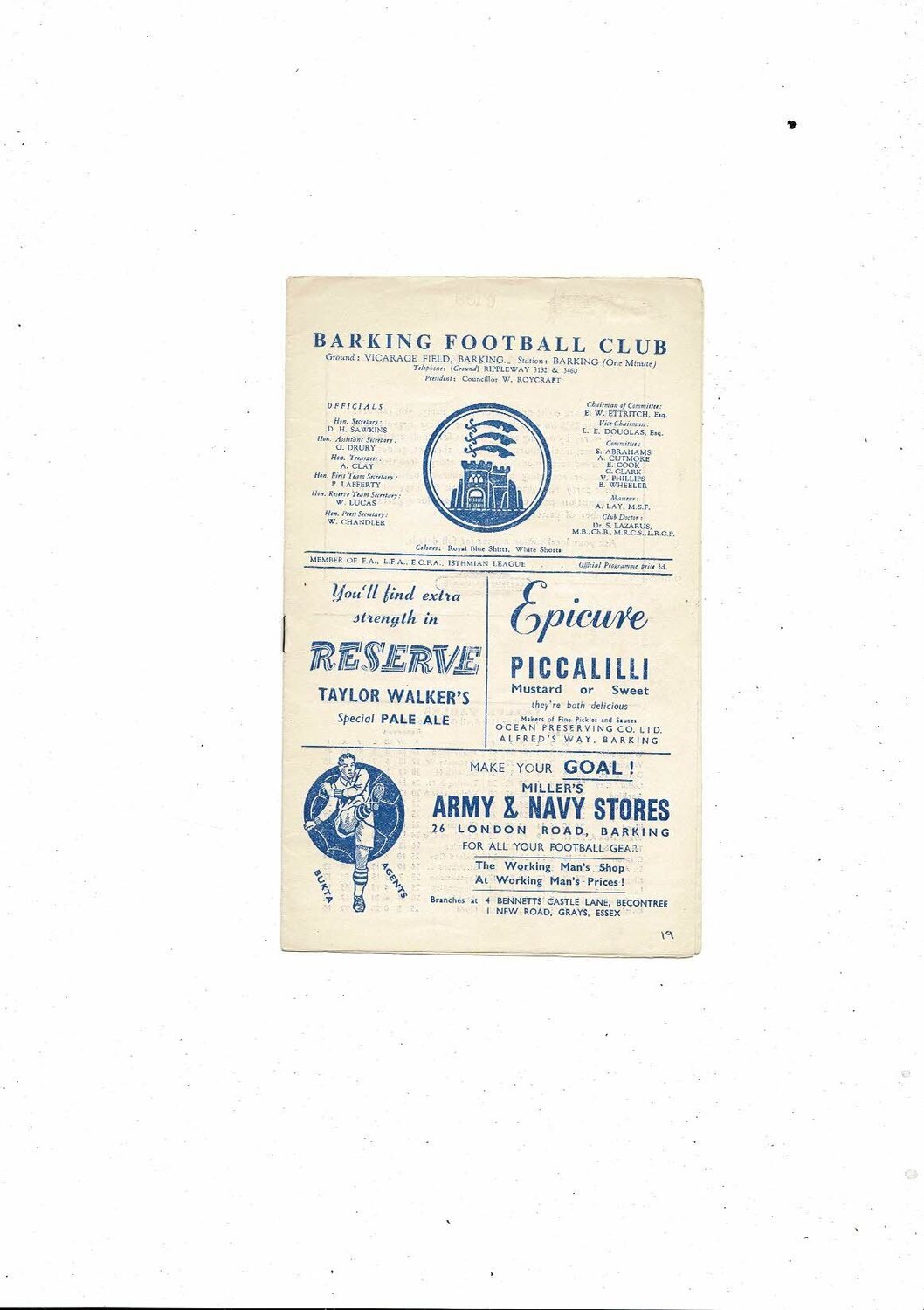 1958/59 Barking v Leytonstone Football Programme