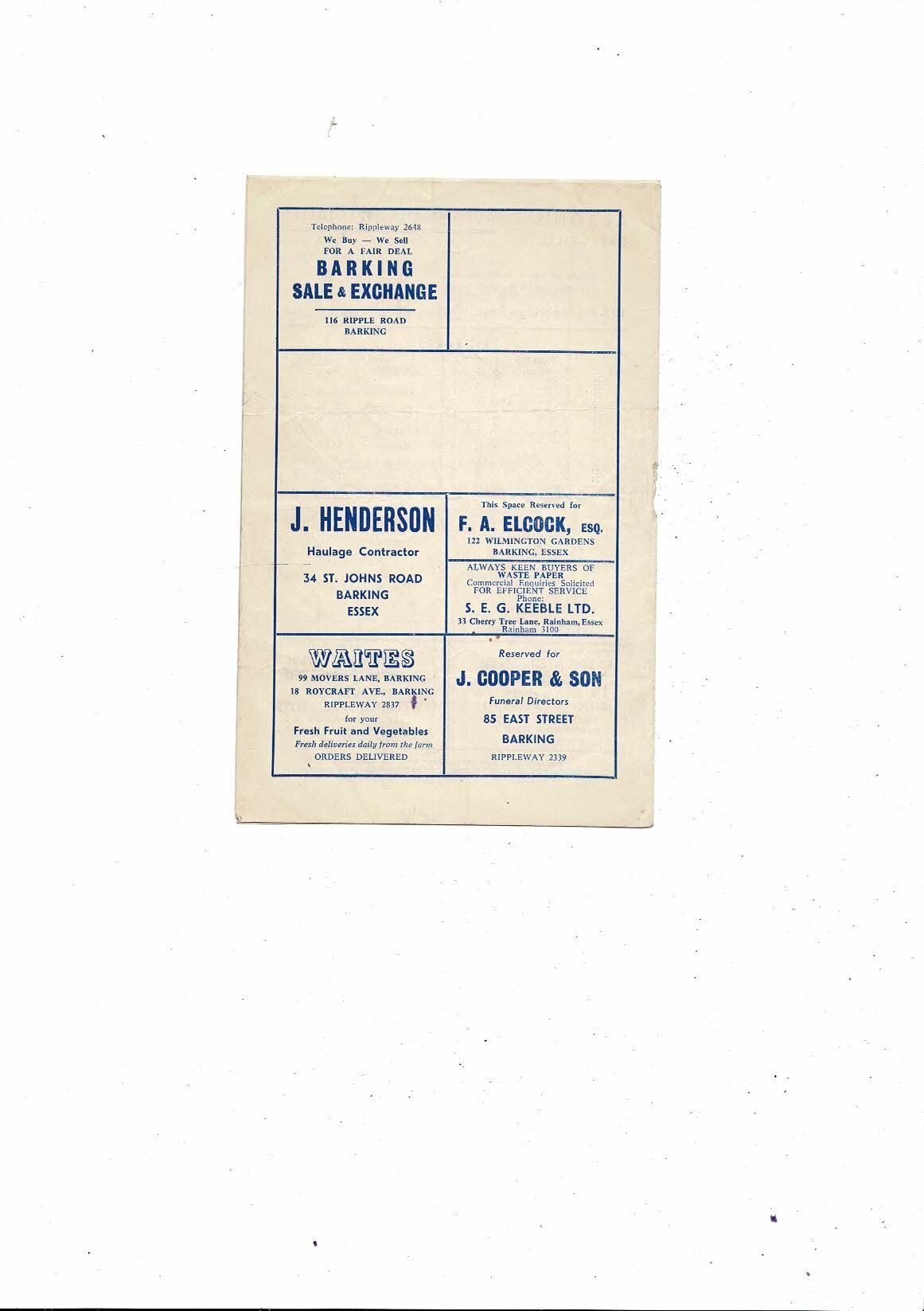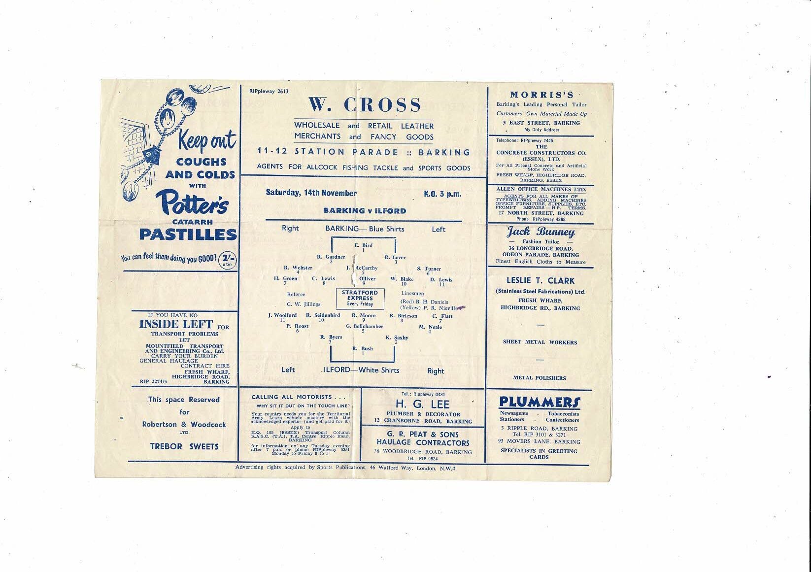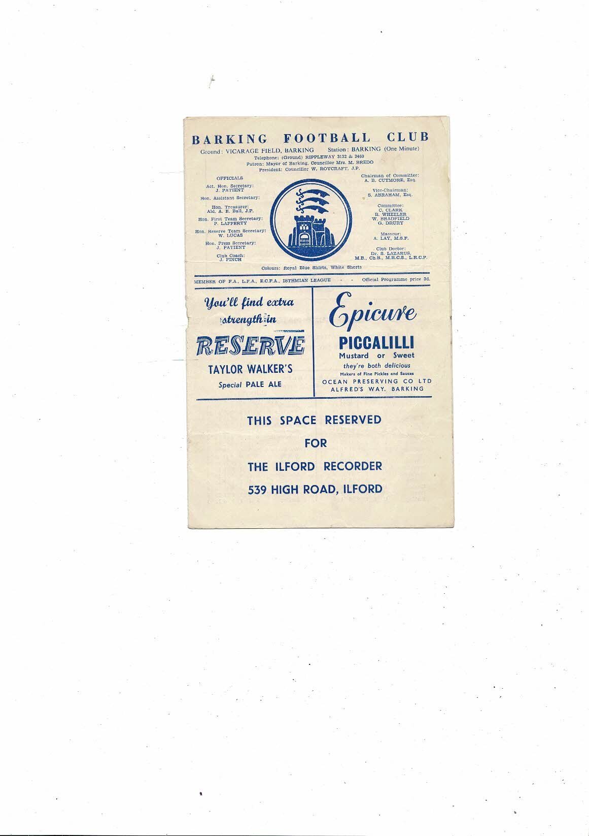 1959/60 Barking v Ilford Isthmian League Football Programme