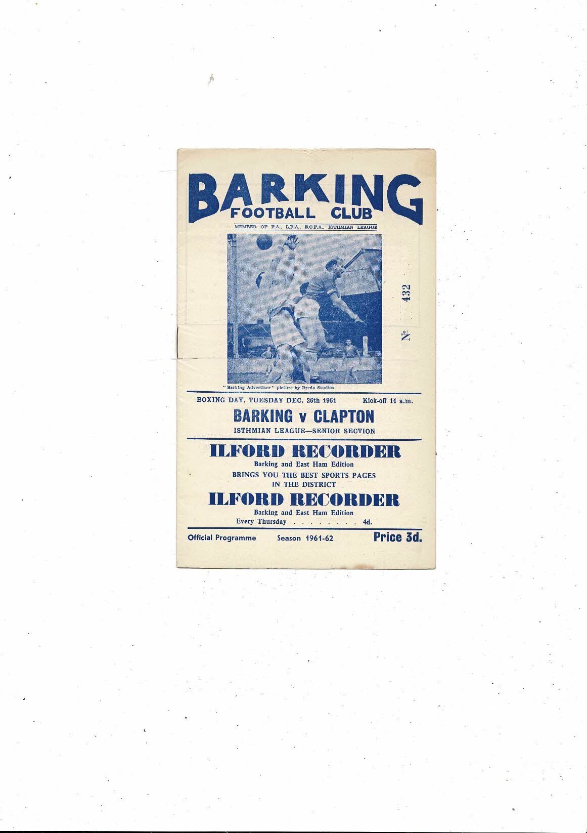 1961/62 Barking v Clapton Isthmian League Football Programme