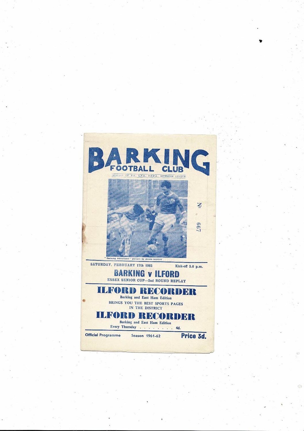 1961/62 Barking v Ilford Essex Senior Cup Replay Football Programme