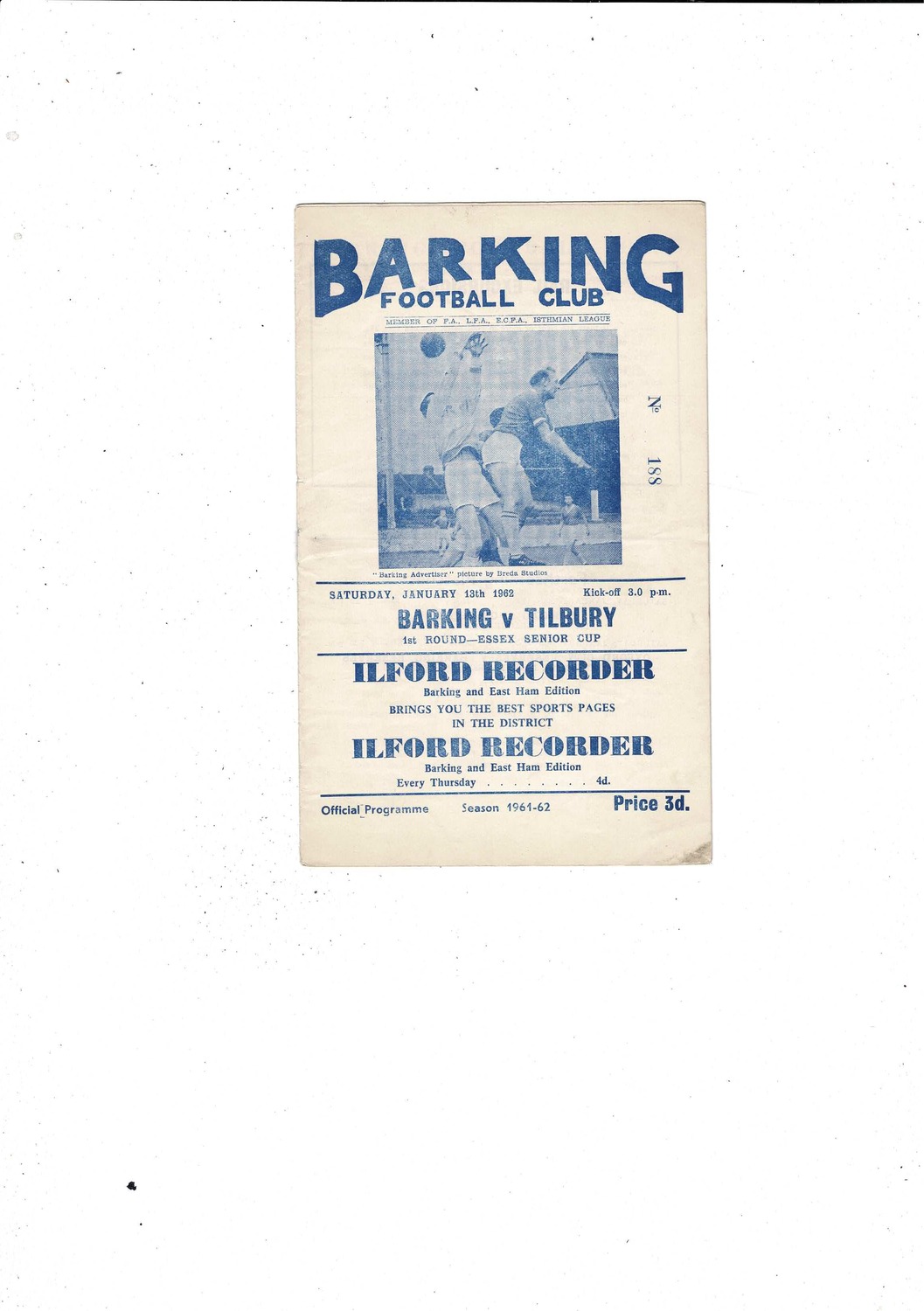 1961/62 Barking v Tilbury Essex Senior Cup Football Programme