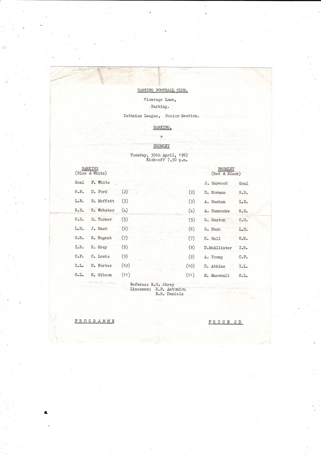 This original single sheet Football Programme is creased & folded with several tears & some staining. No handwriting