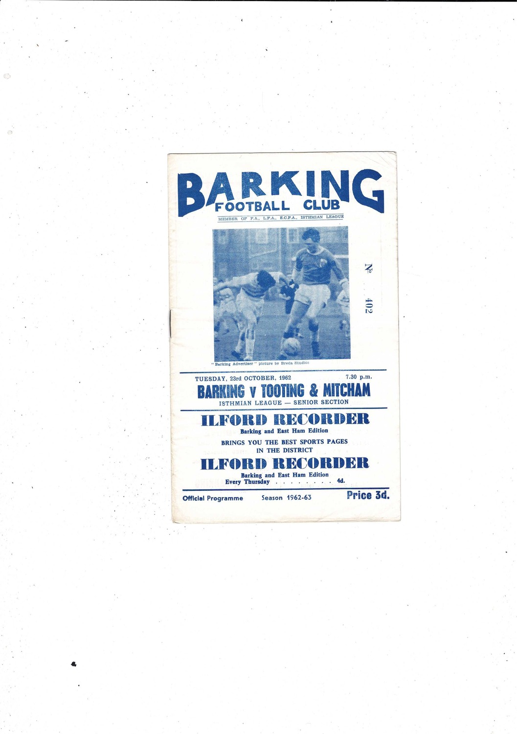 1962/63 Barking v Tooting & Mitcham Football Programme