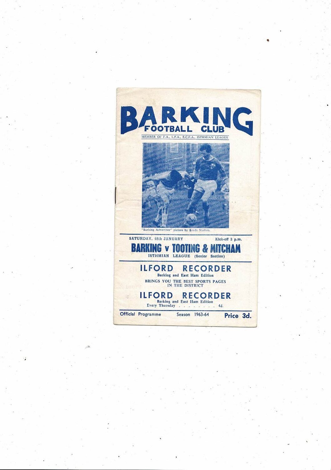 1963/64 Barking v Tooting & Mitcham Football Programme