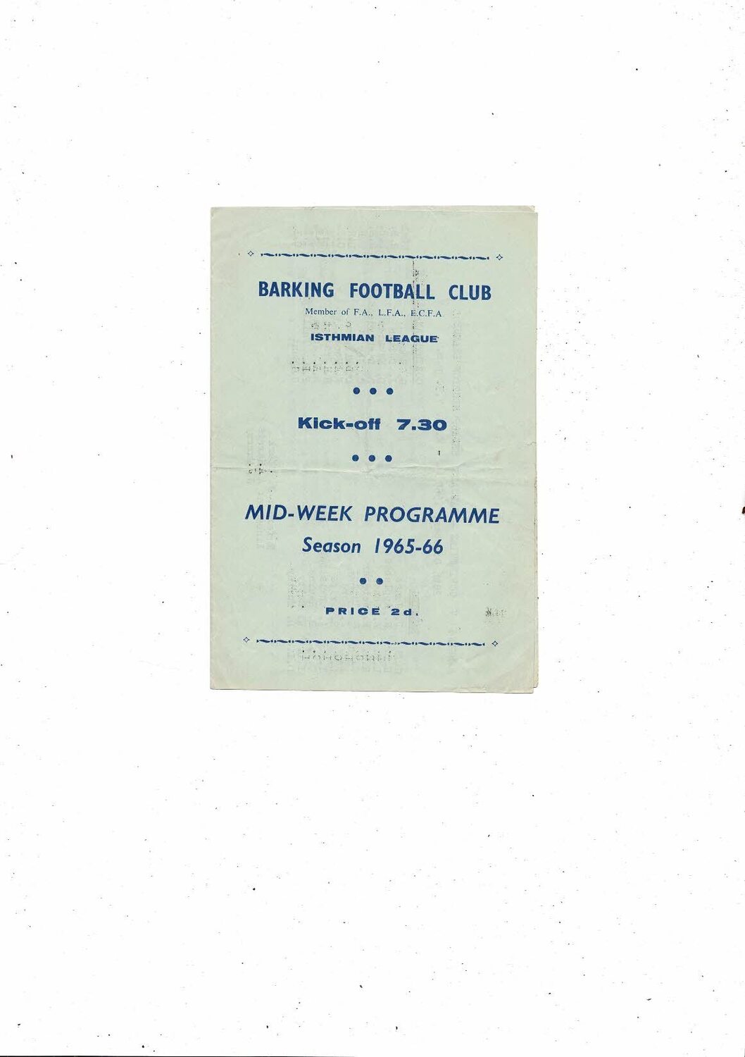 1965/66 Barking v Corinthian Casuals Football Programme