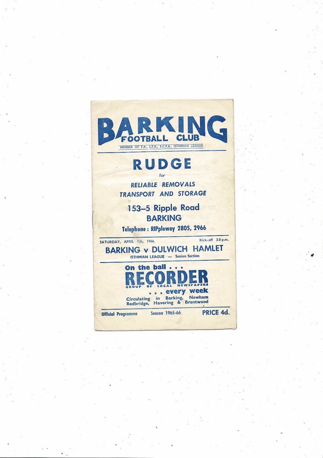 1965/66 Barking v Dulwich Hamlet Football Programme