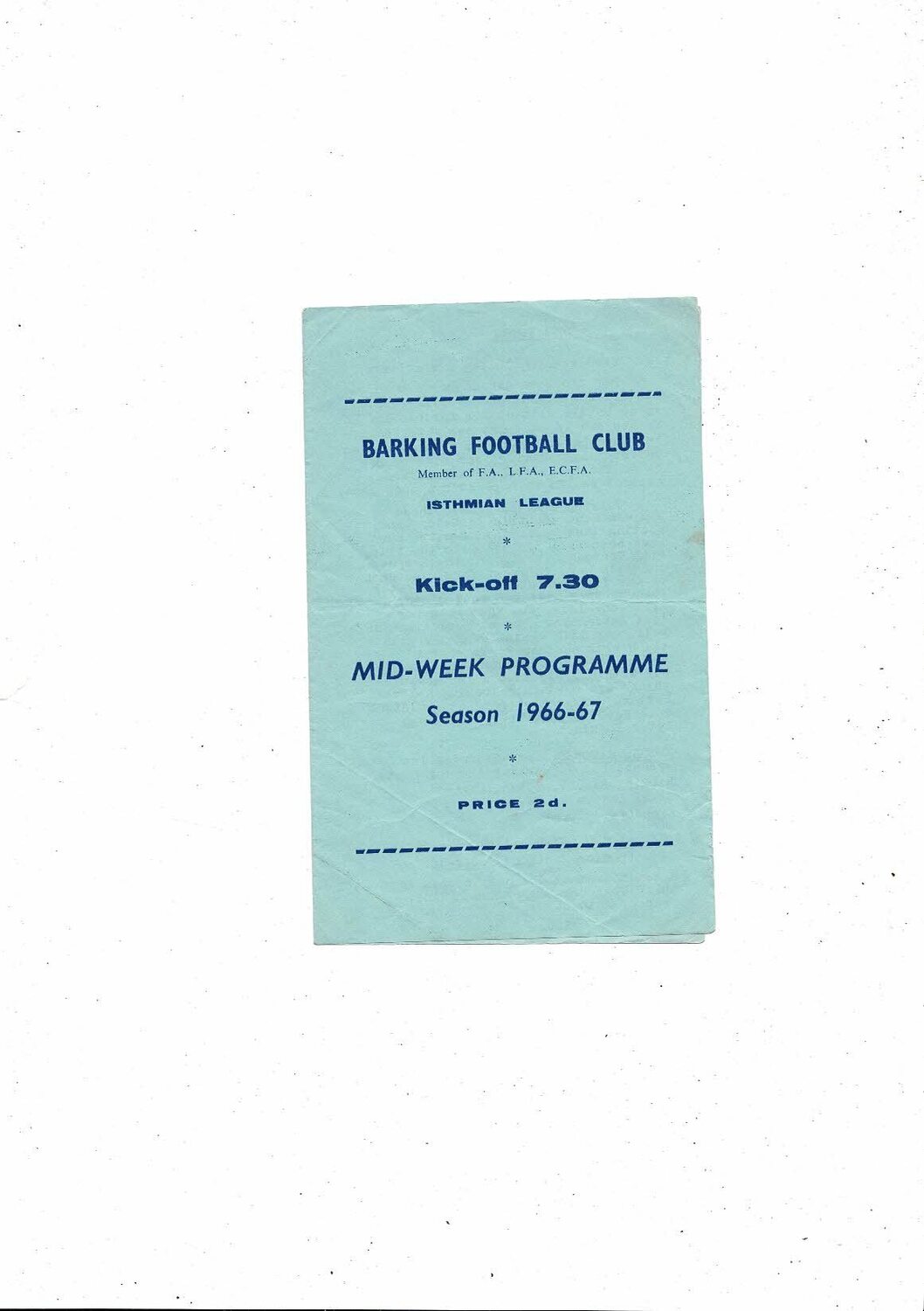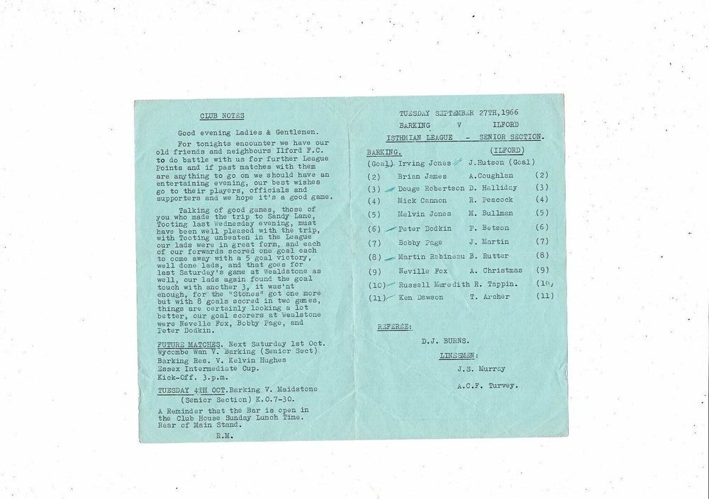 1966/67 Barking v Ilford Football Programme
