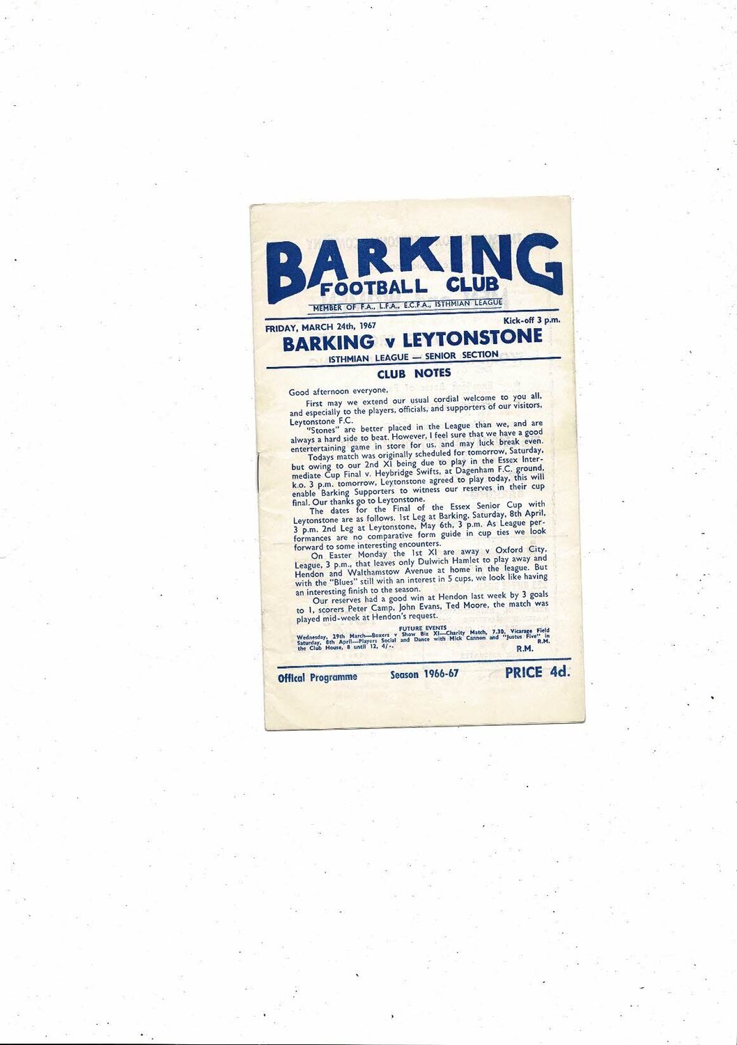 1966/67 Barking v Leytonstone Football Programme