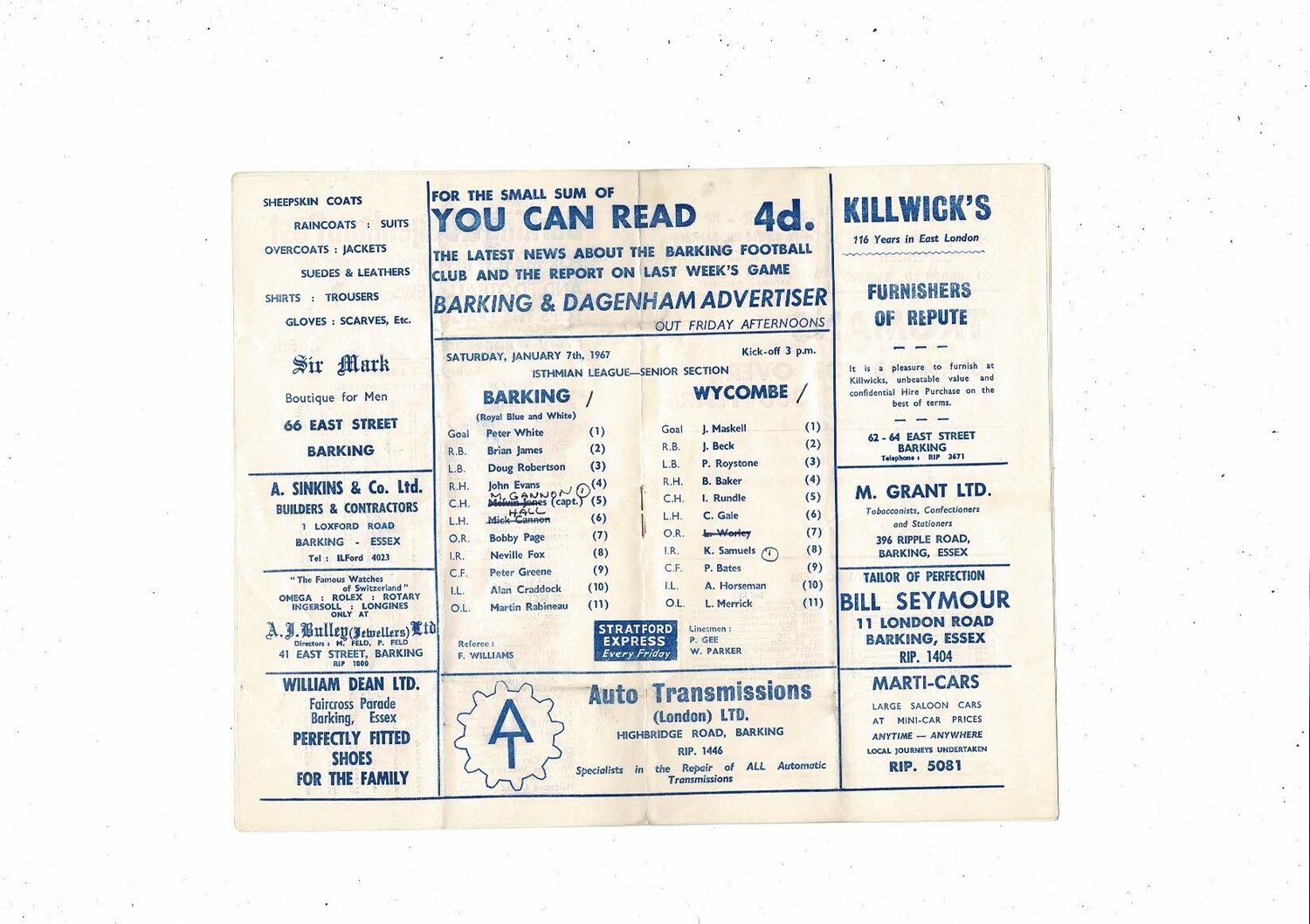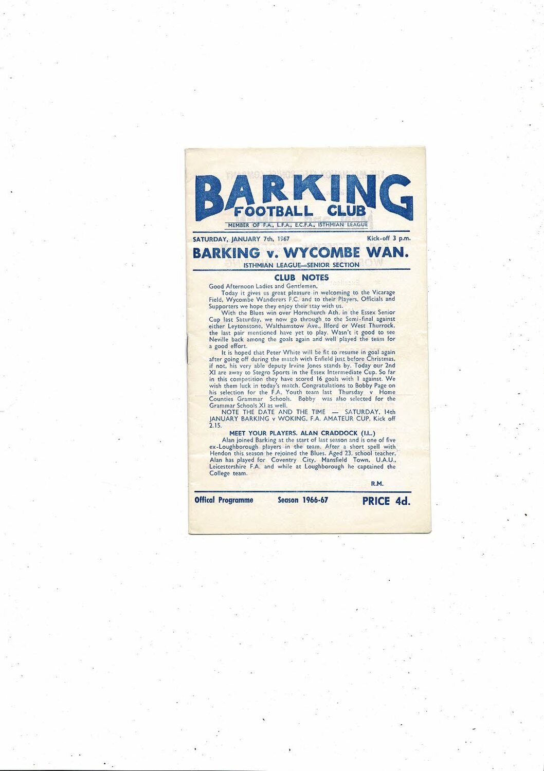 1966/67 Barking v Wycombe Wanderers Football Programme