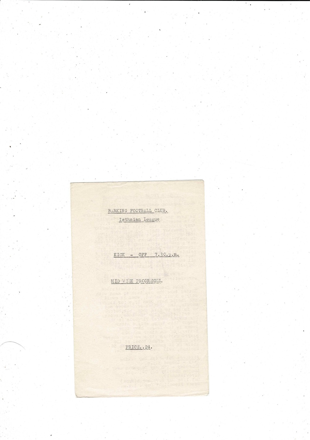 This original 4 page Football Programme is creased with some staining. No handwriting