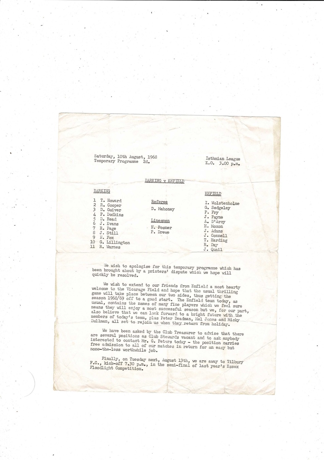 This original single sheet Football Programme is creased also has a fold with some staining & several tears. No handwriting