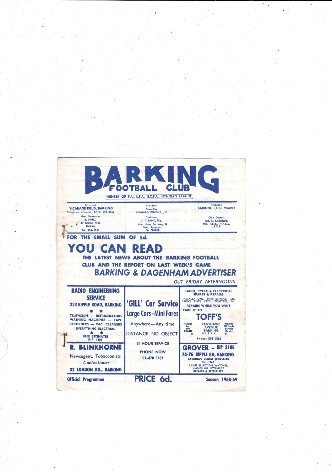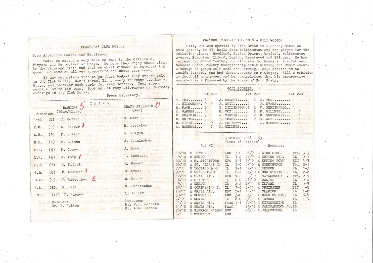 1968/69 Barking v Grays Athletic Amateur Cup Football Programme