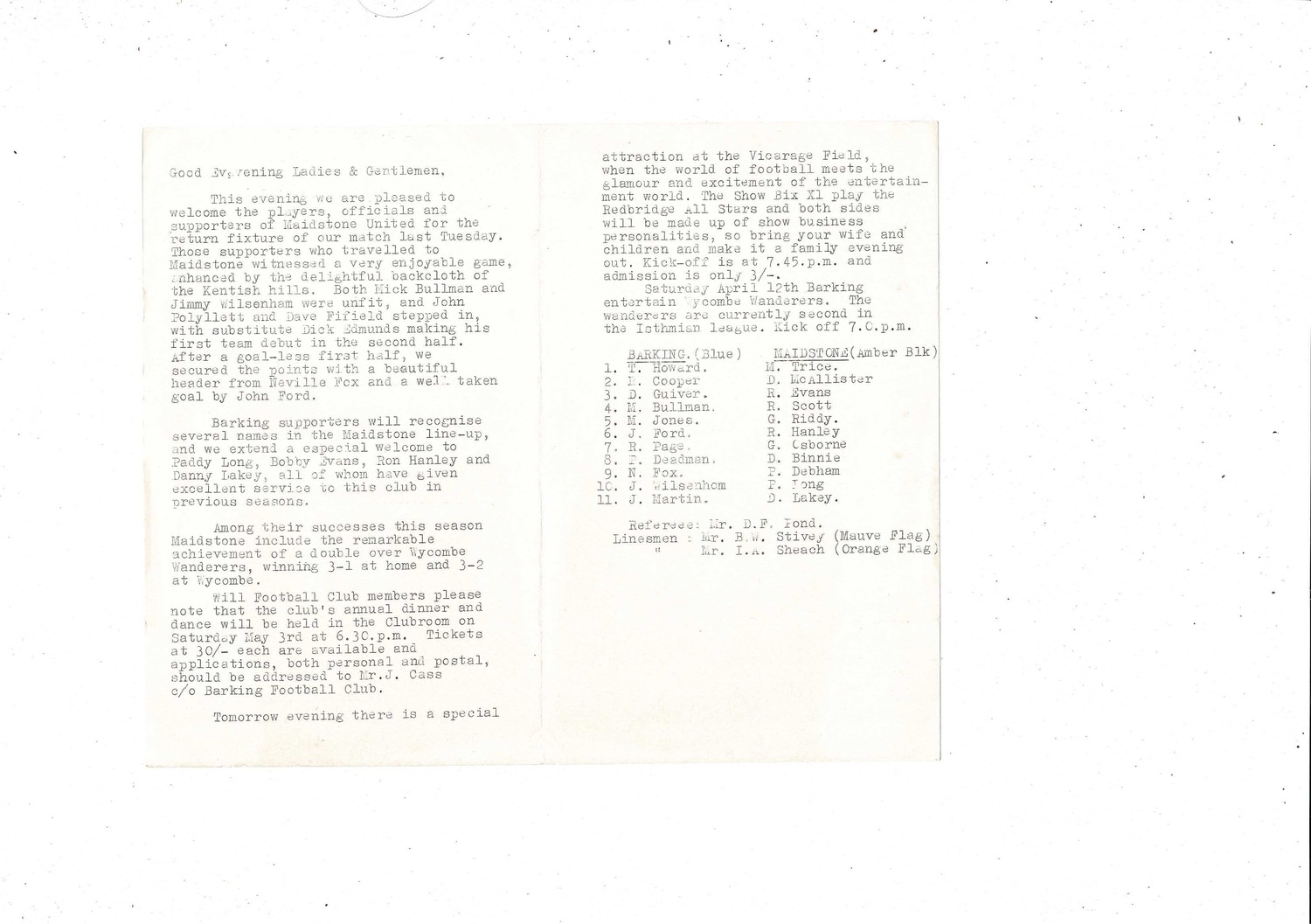 This original 4 page Football Programme is creased with some minor staining. No handwriting