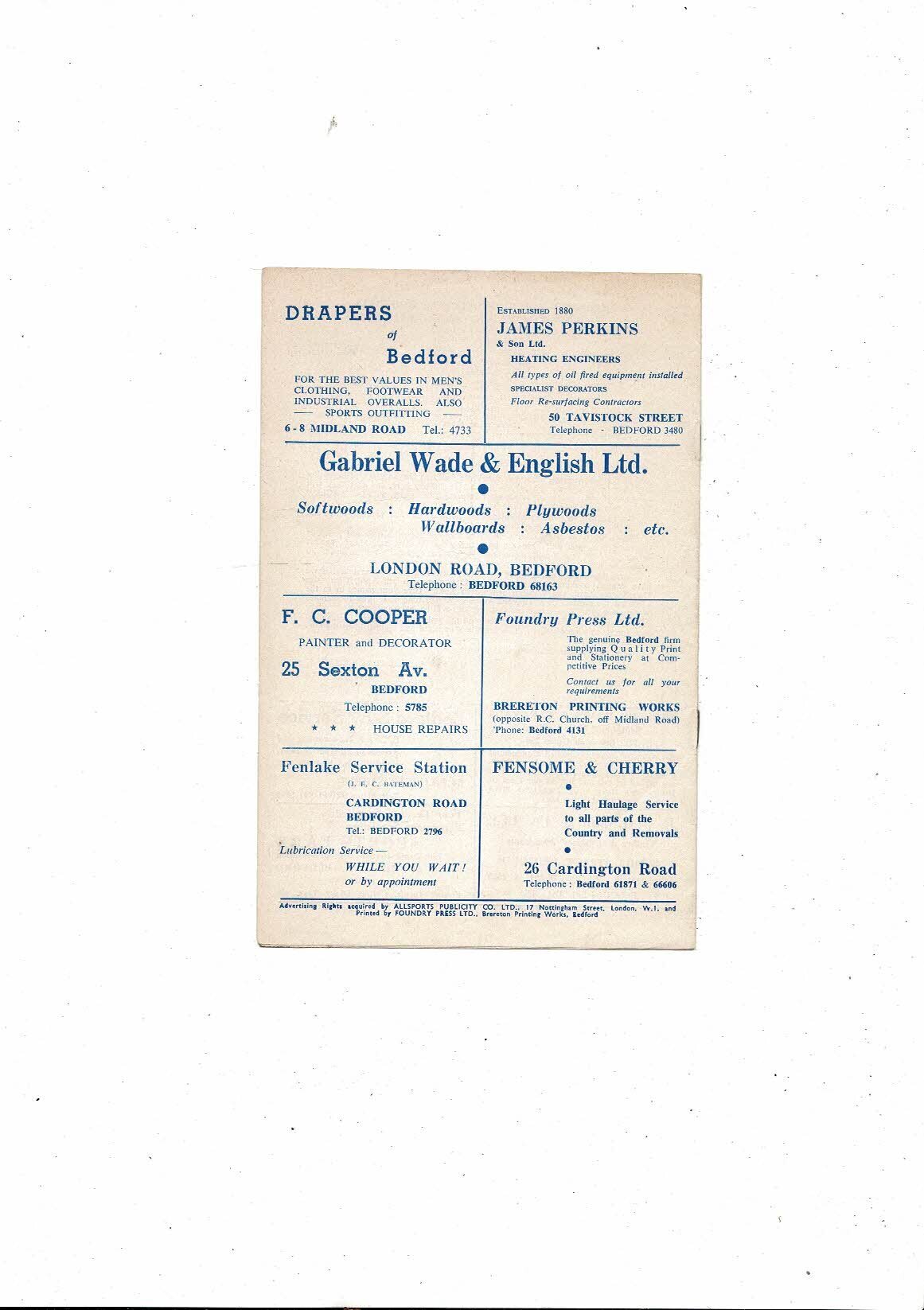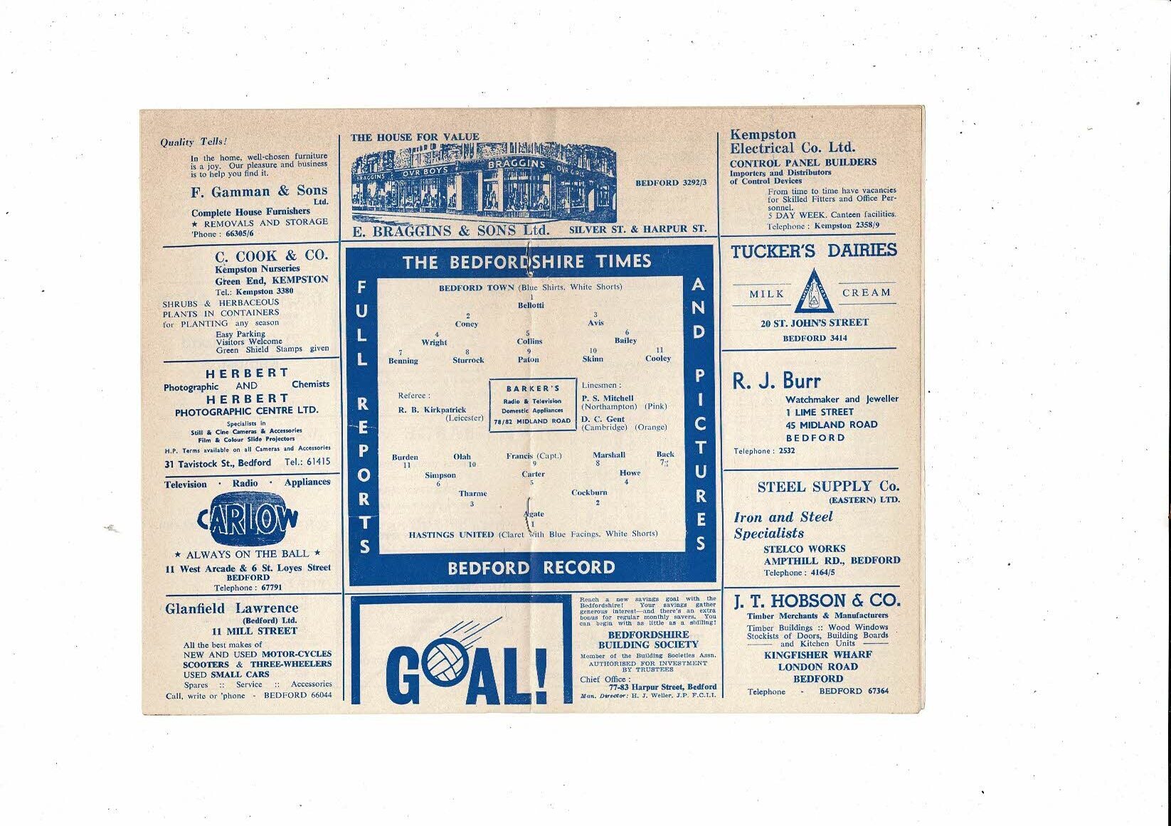 1964/65 Bedford Town v Hastings United Southern League Football Programme