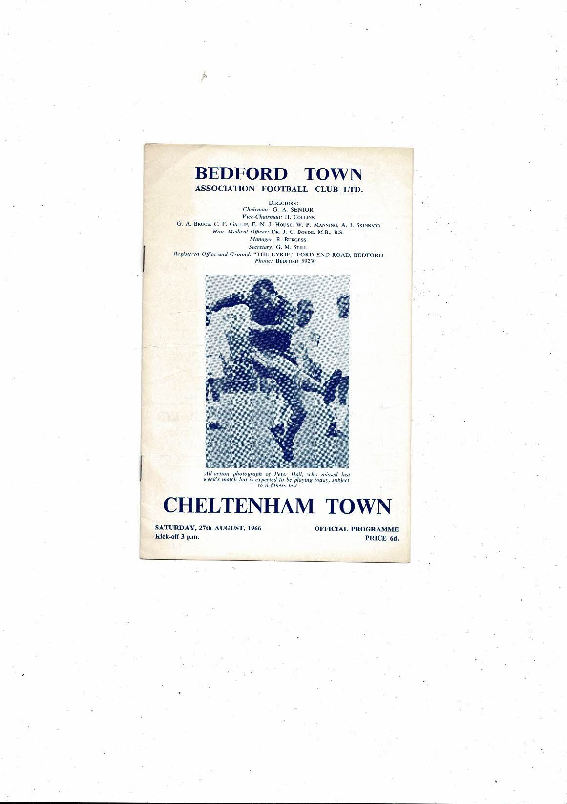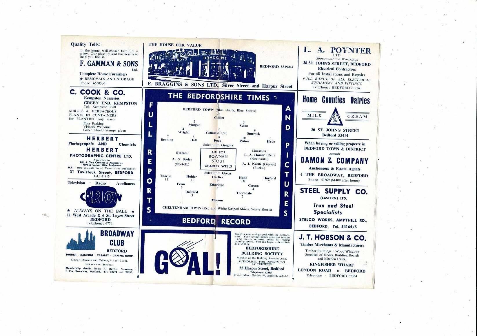 1966/67 Bedford Town v Cheltenham Town Southern League Football Programme