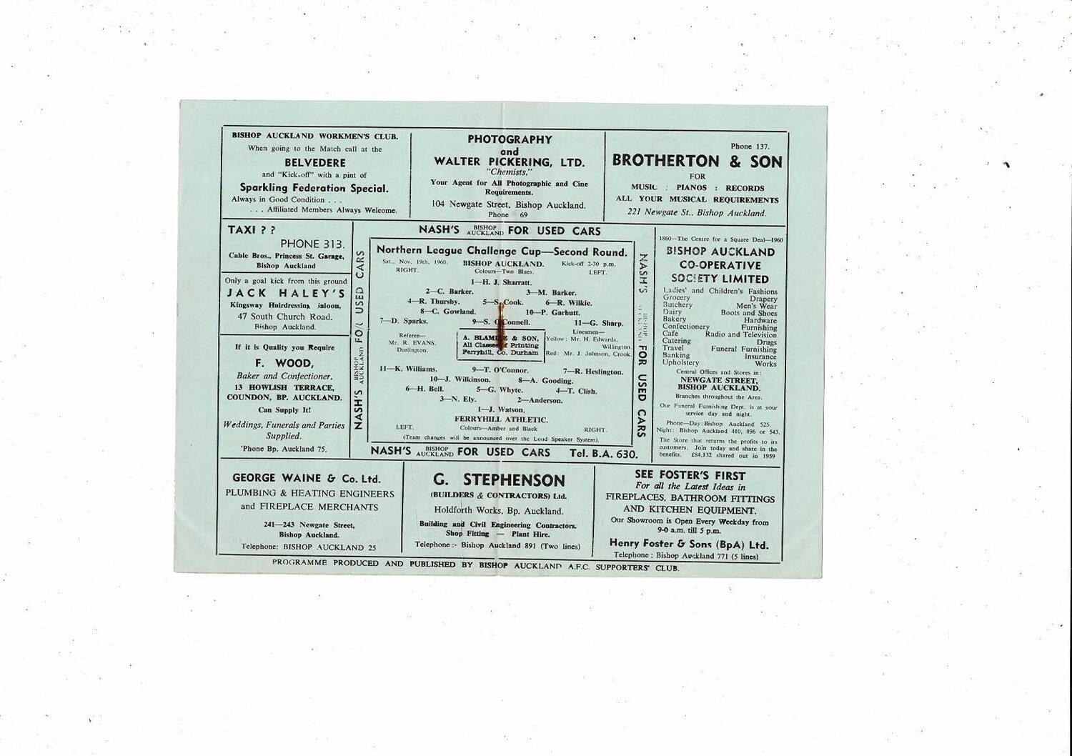 1960/61 Bishop Auckland v Ferryhill Athletic Challenge Cup Football Programme