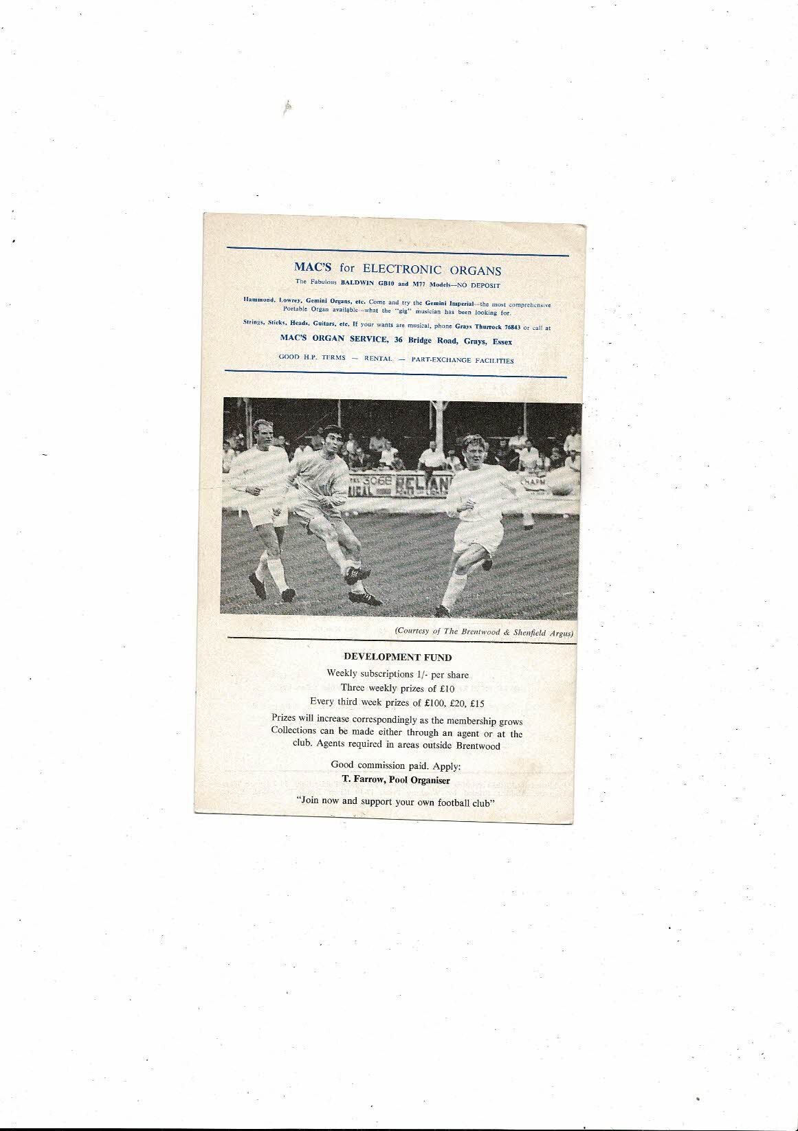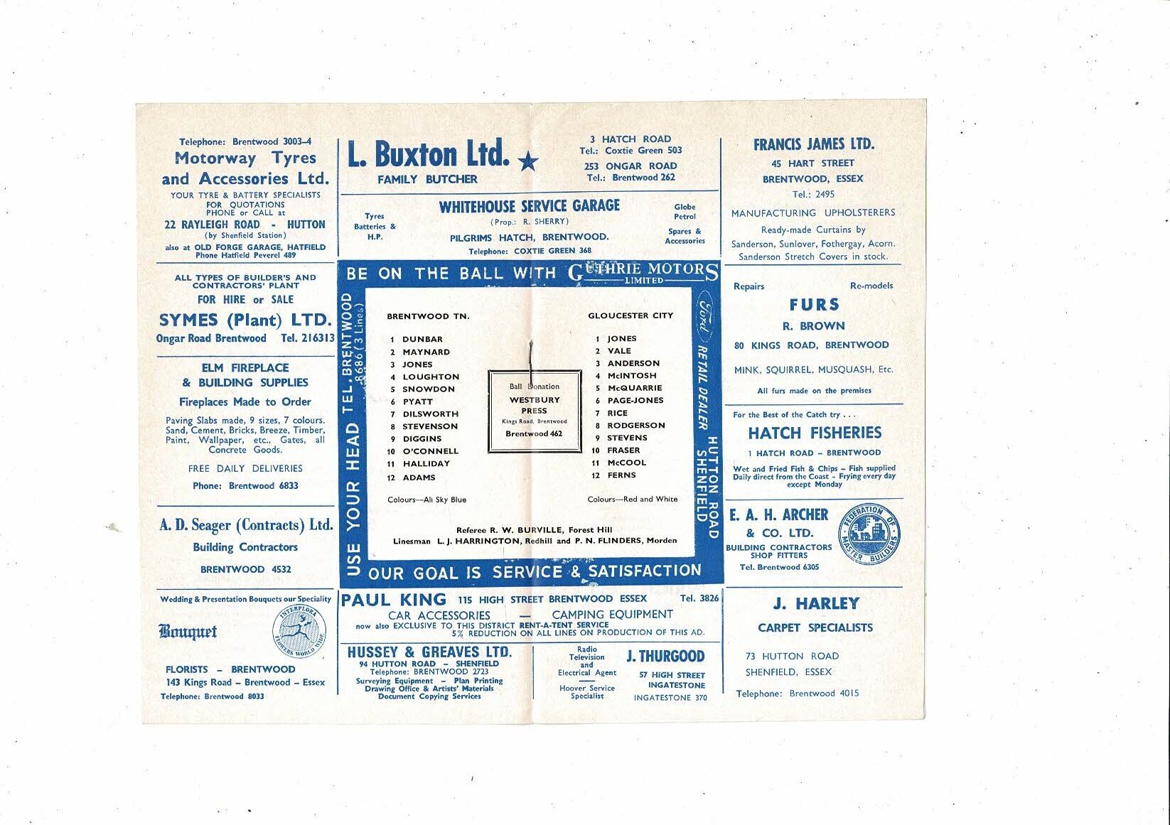 1969/70 Brentwood Town v Gloucester City Football Programme