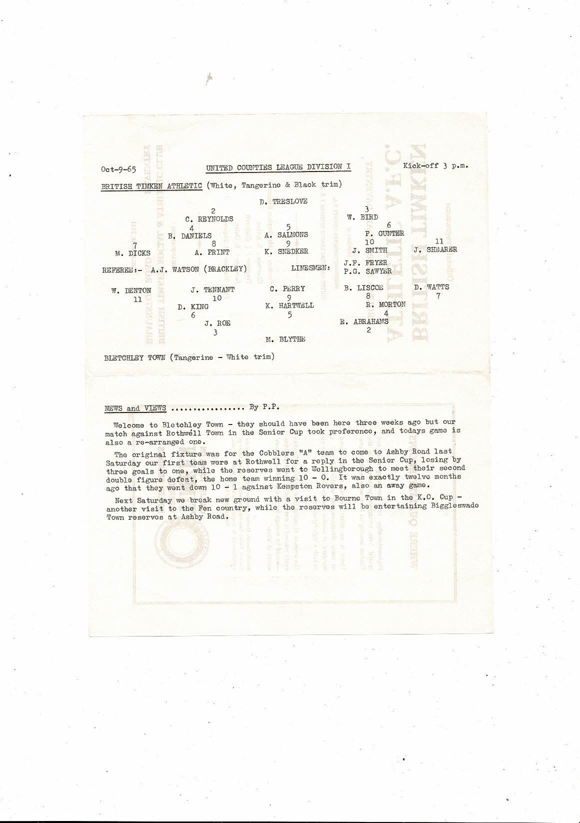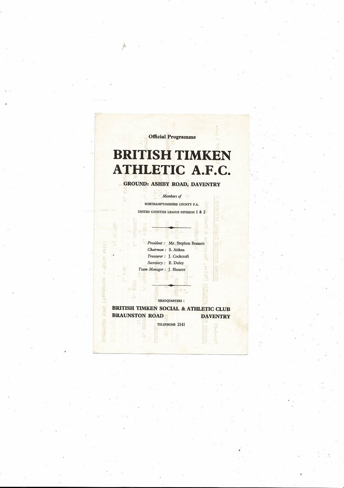 1965/66 British Timken Athletic v Bletchley Town United Counties League Football Programme