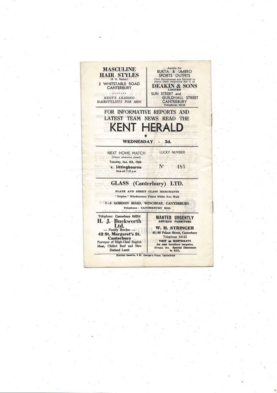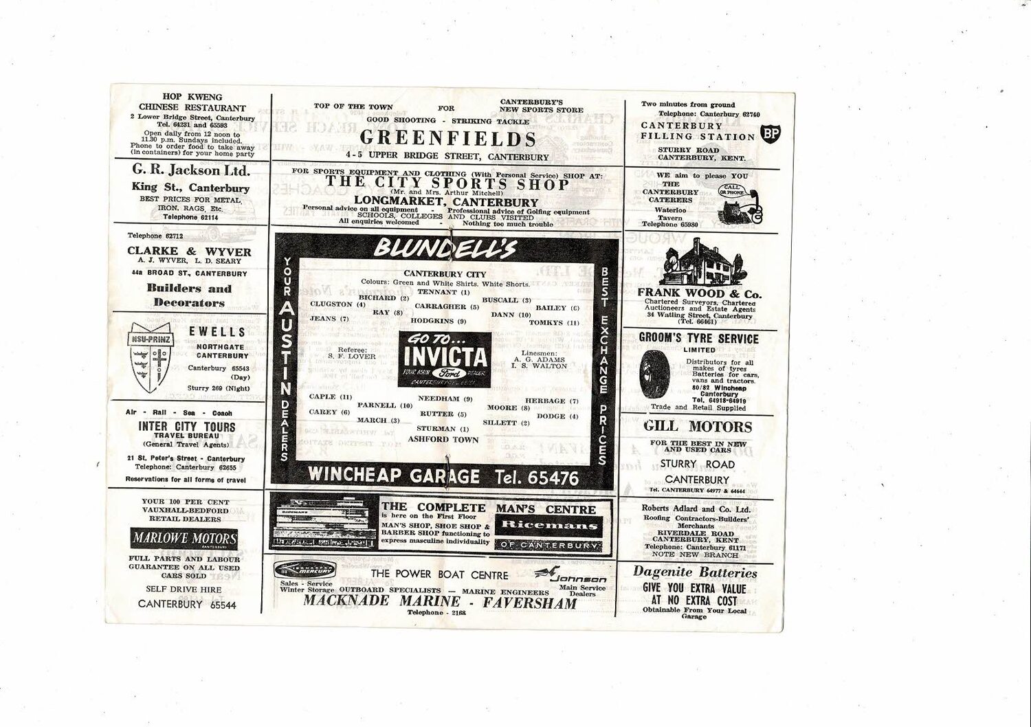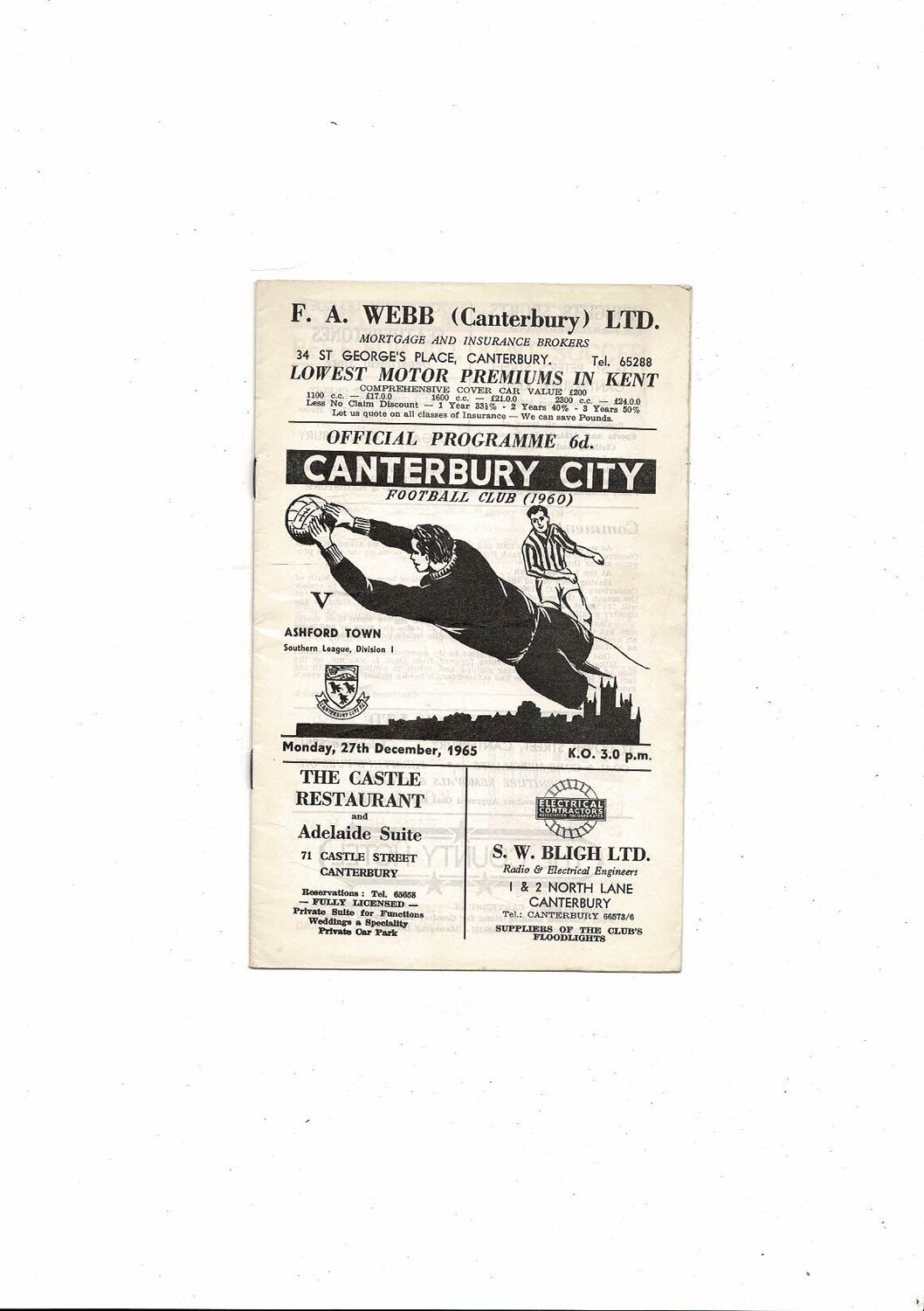 1965/66 Canterbury City v Ashford Town Southern League Football Programme