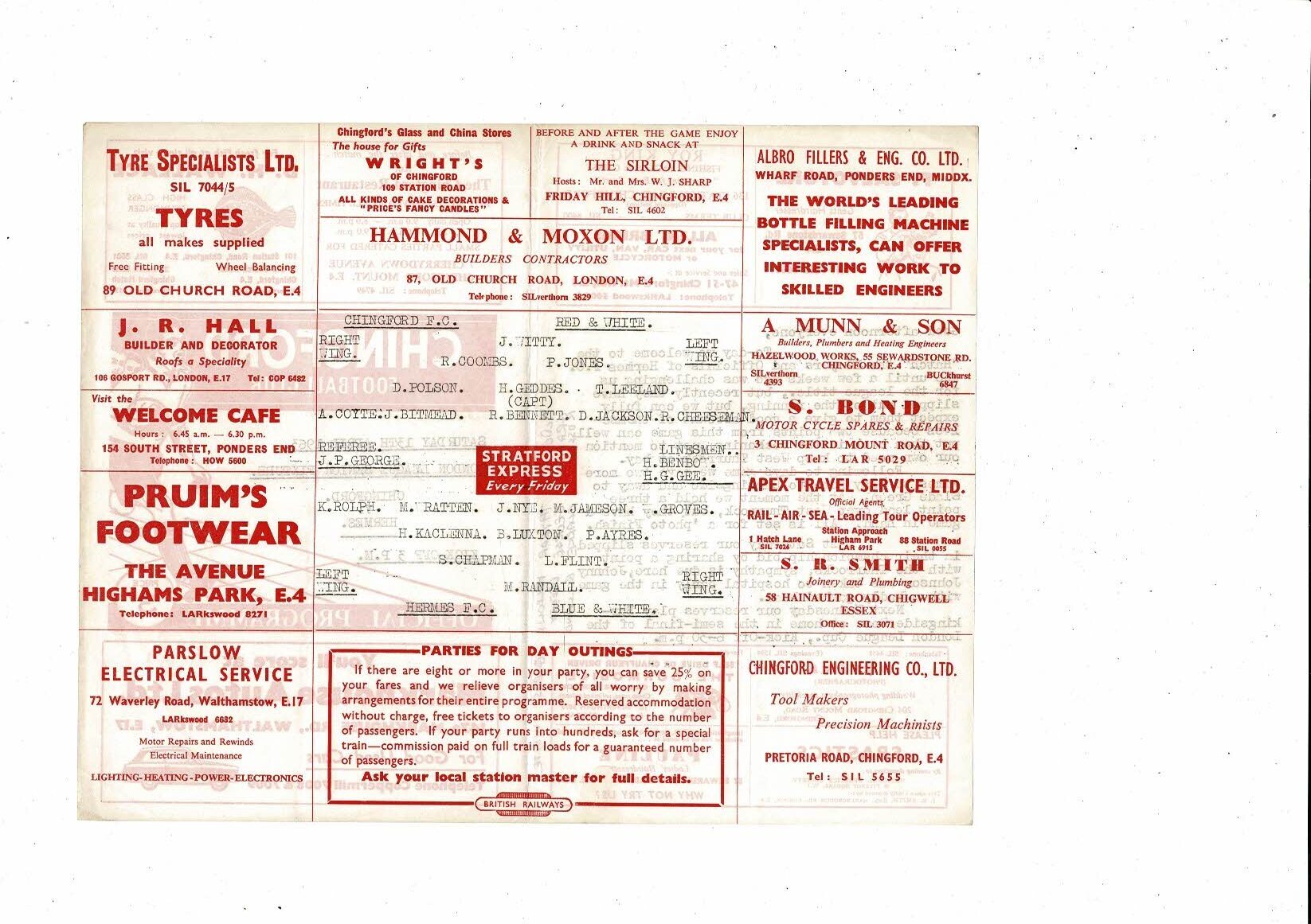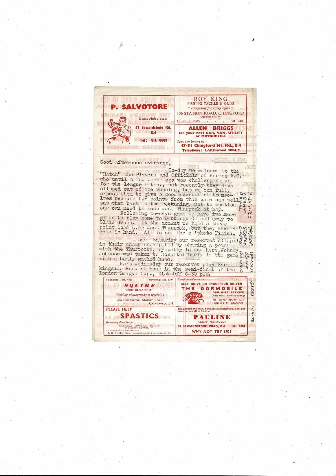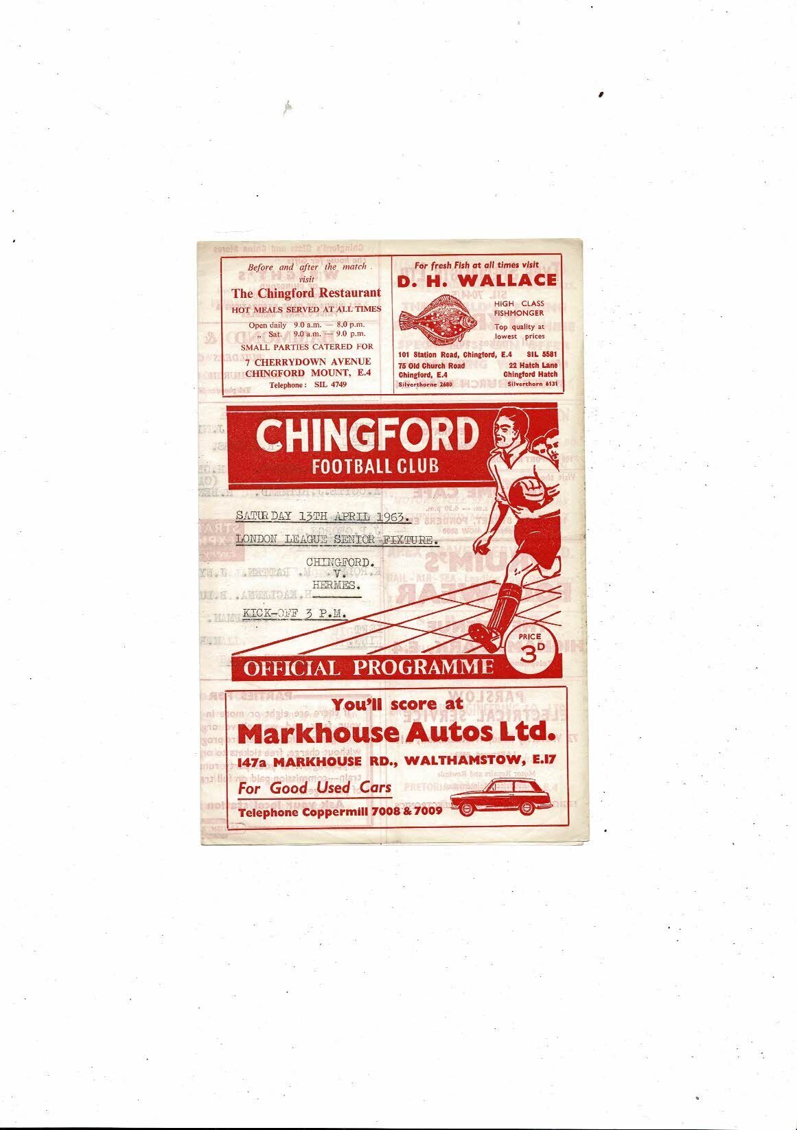 1962/63 Chingford v Hermes London Senior League Football Programme