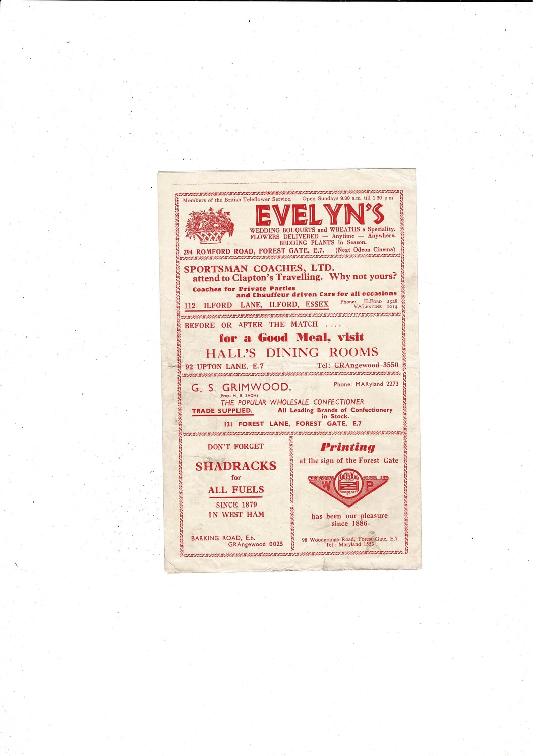 This original 4 page Football Programme is creased & folded with some staining, several tiny tears & some letters colored in. No handwriting