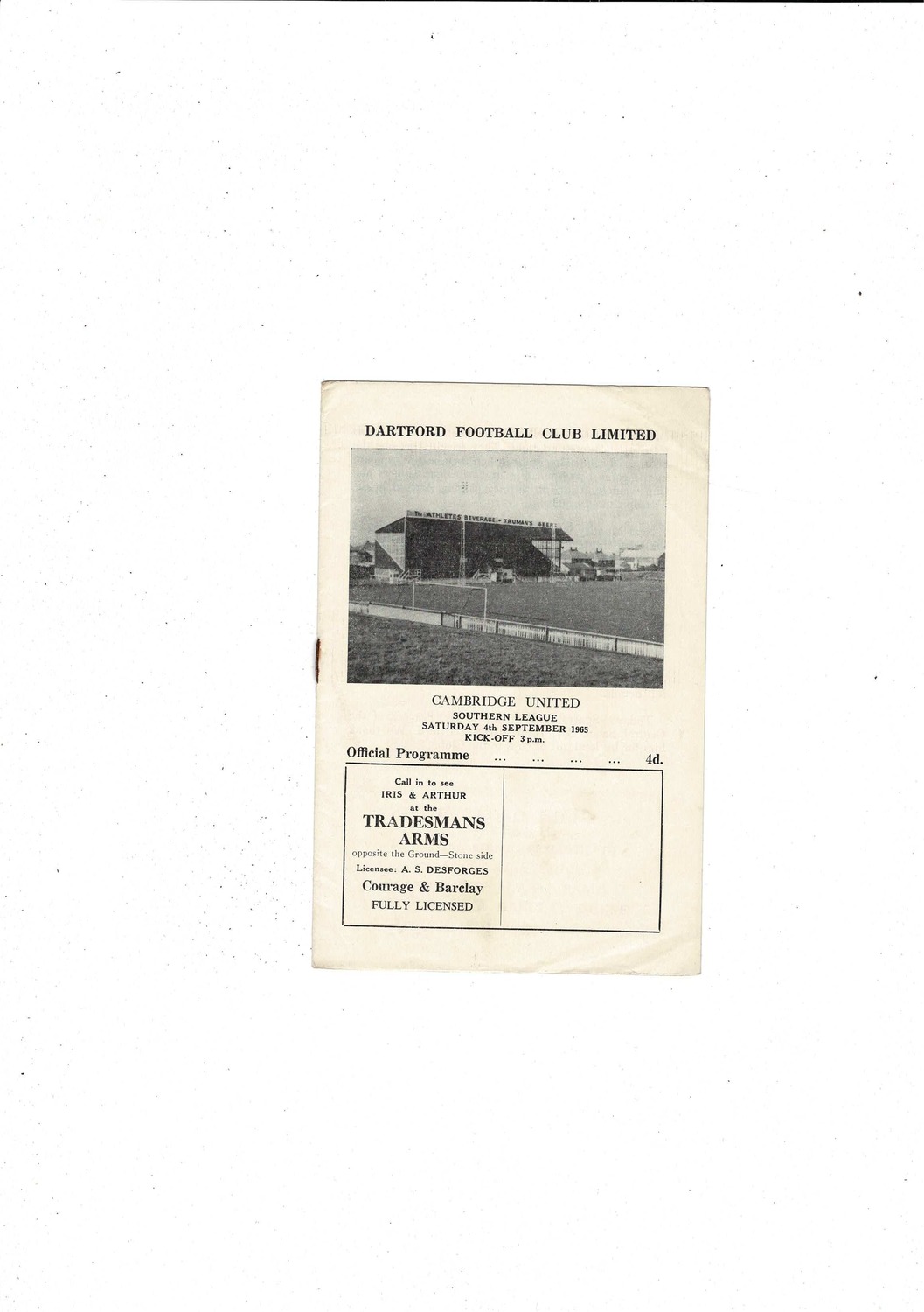 1965/66 Dartford v Cambridge United Football Programme