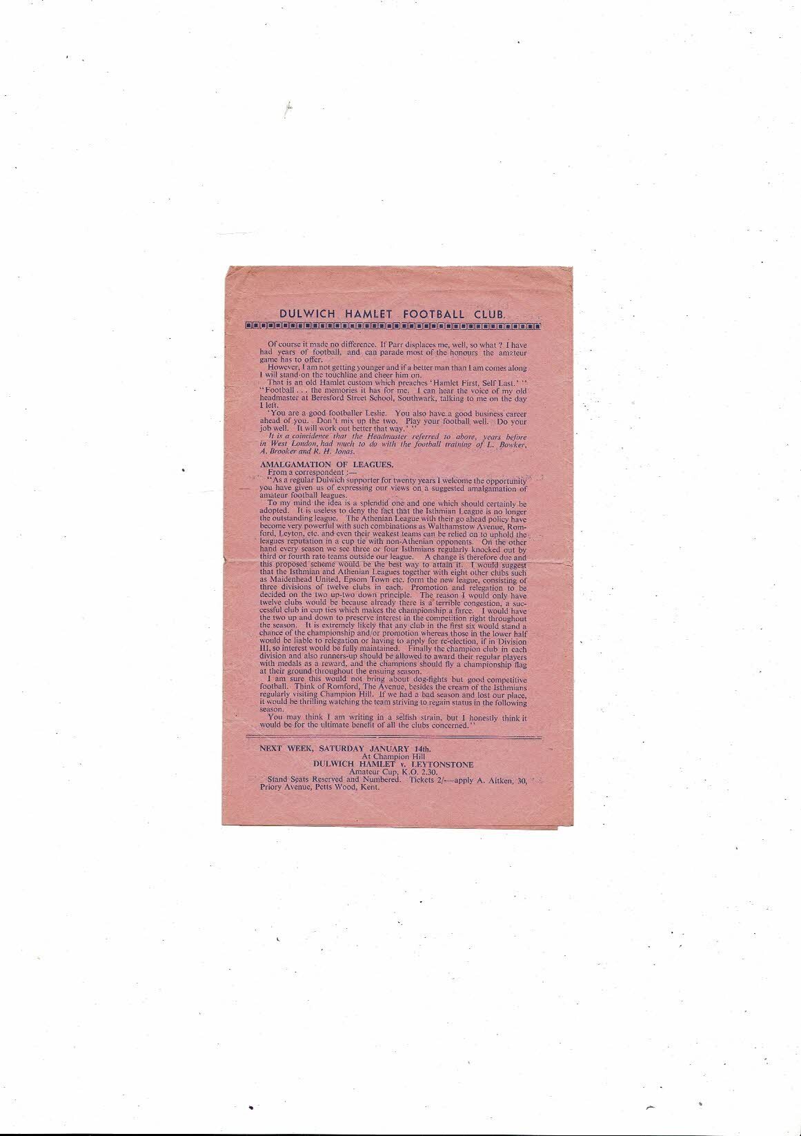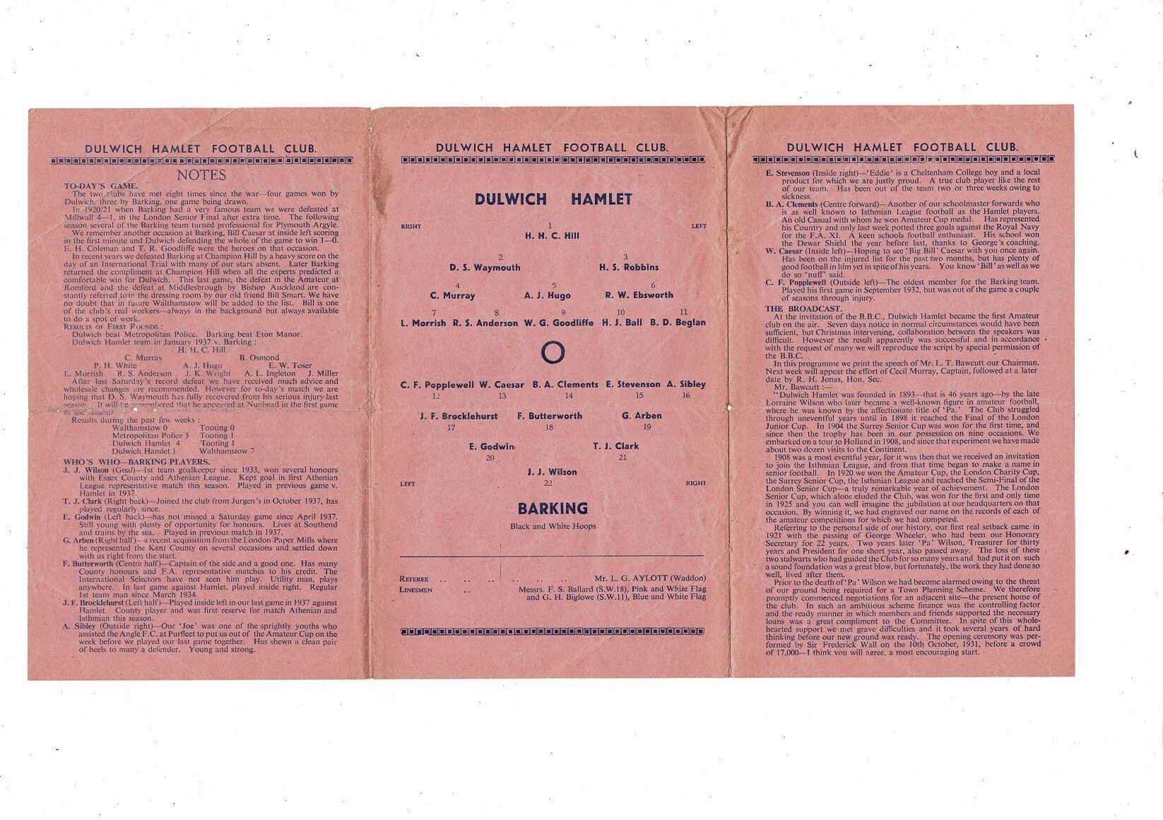 1938/39 Dulwich Hamlet v Barking London Senior Cup Football Programme