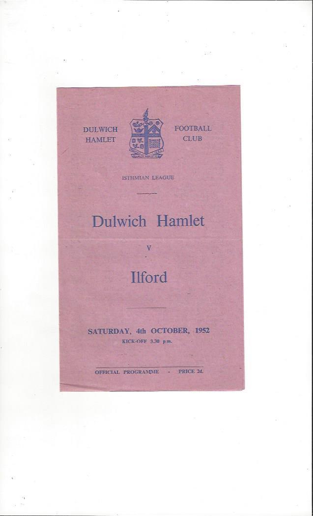 1952/53 Dulwich Hamlet v Ilford Football Programme