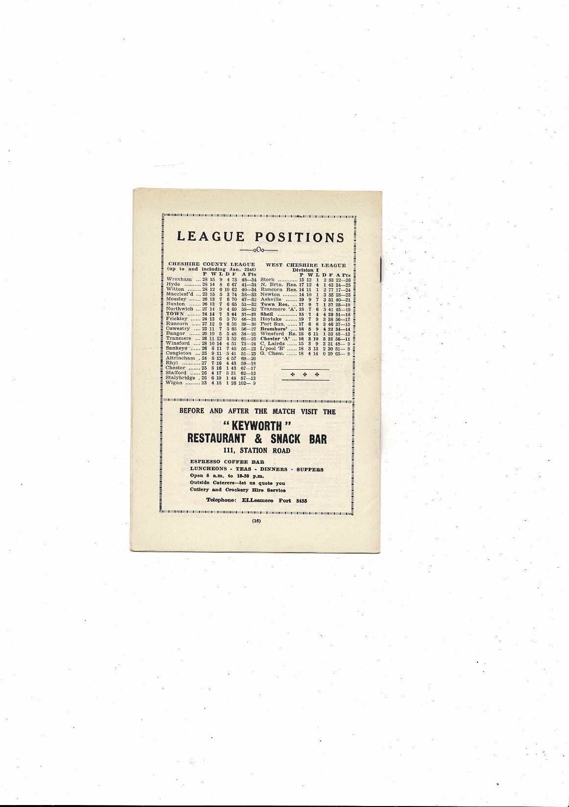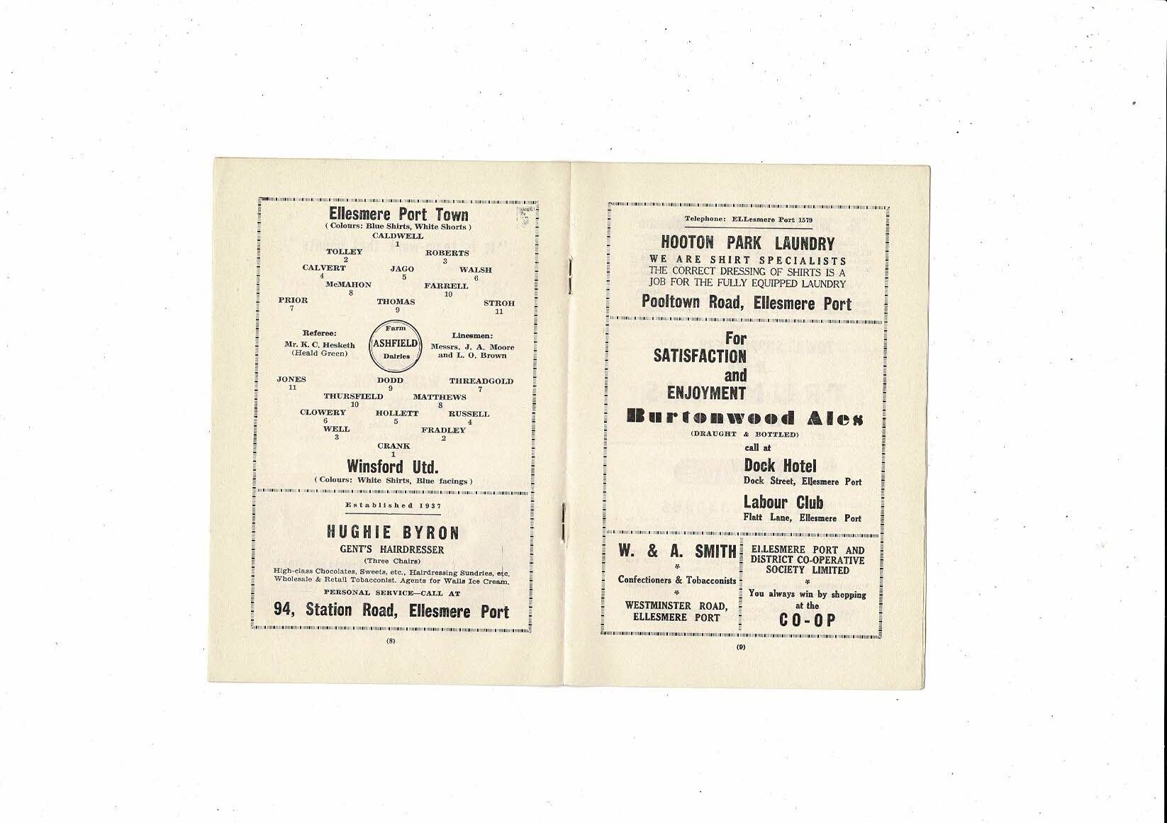 1960/61 Ellesmere Port Town v Winsford Res Cheshire League Football Programme