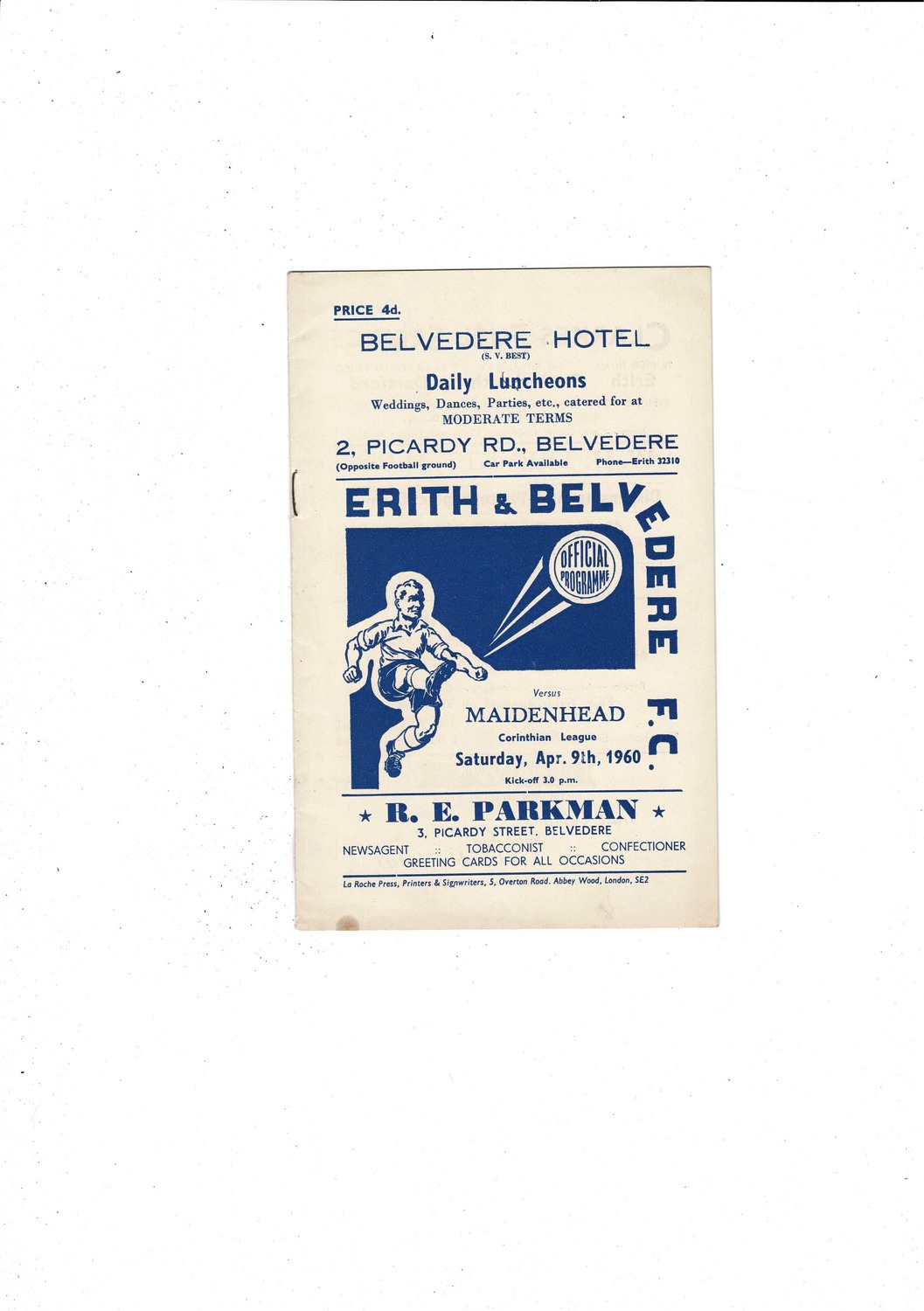 1959/60 Erith & Belvedere v Maidenhead Football Programme