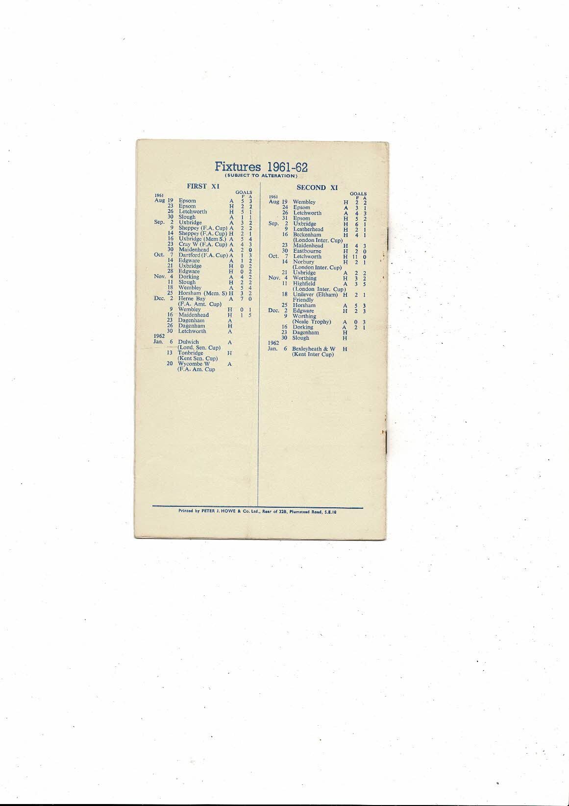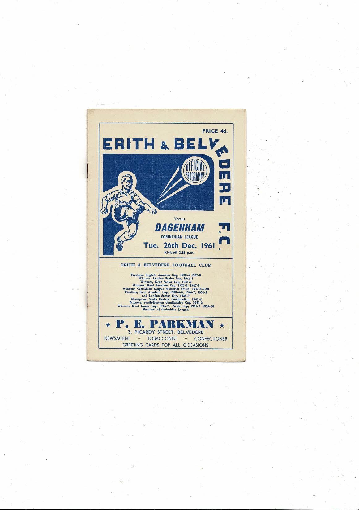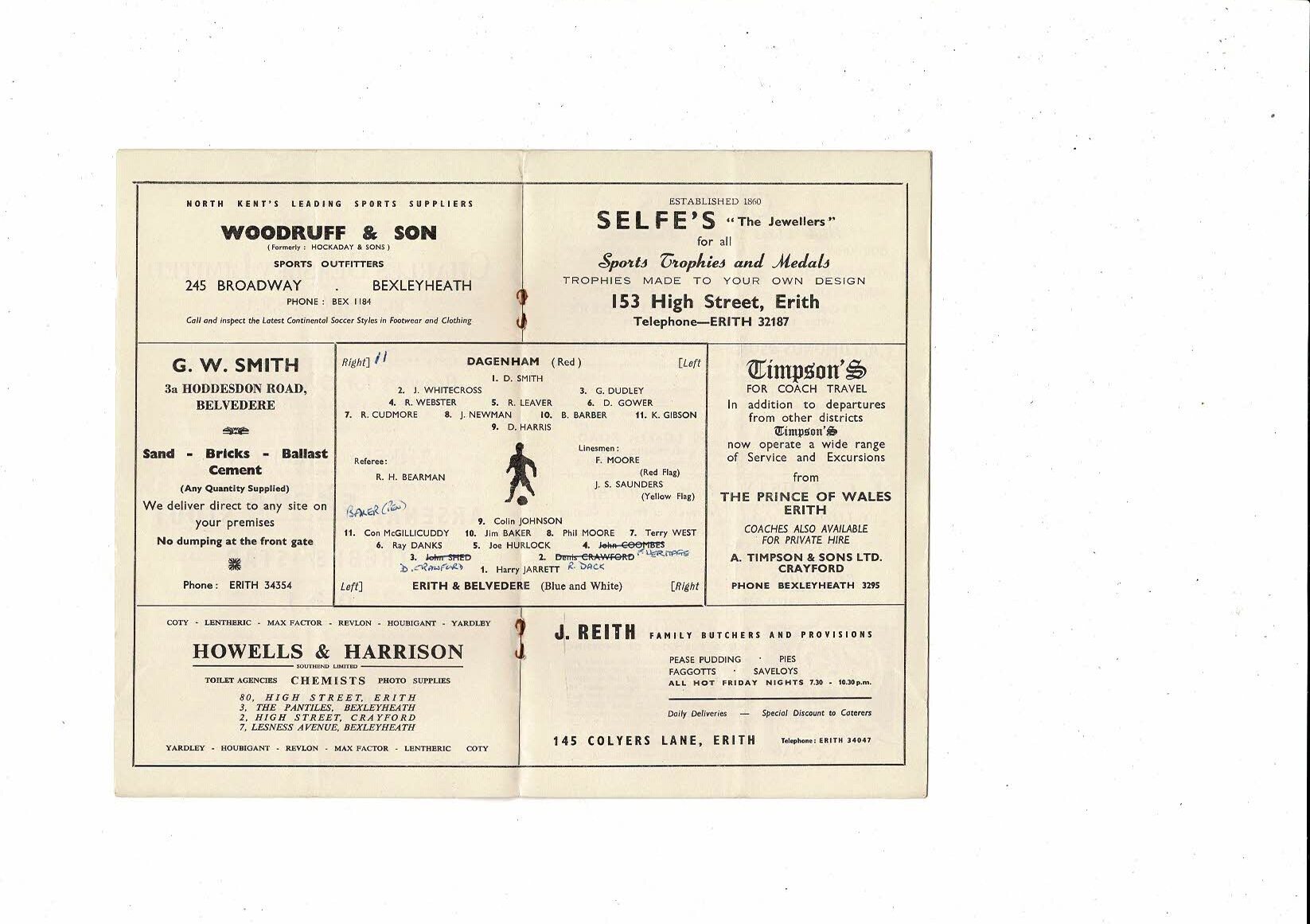 1961/62 Erith & Belvedere v Dagenham Corinthian League Football Programme