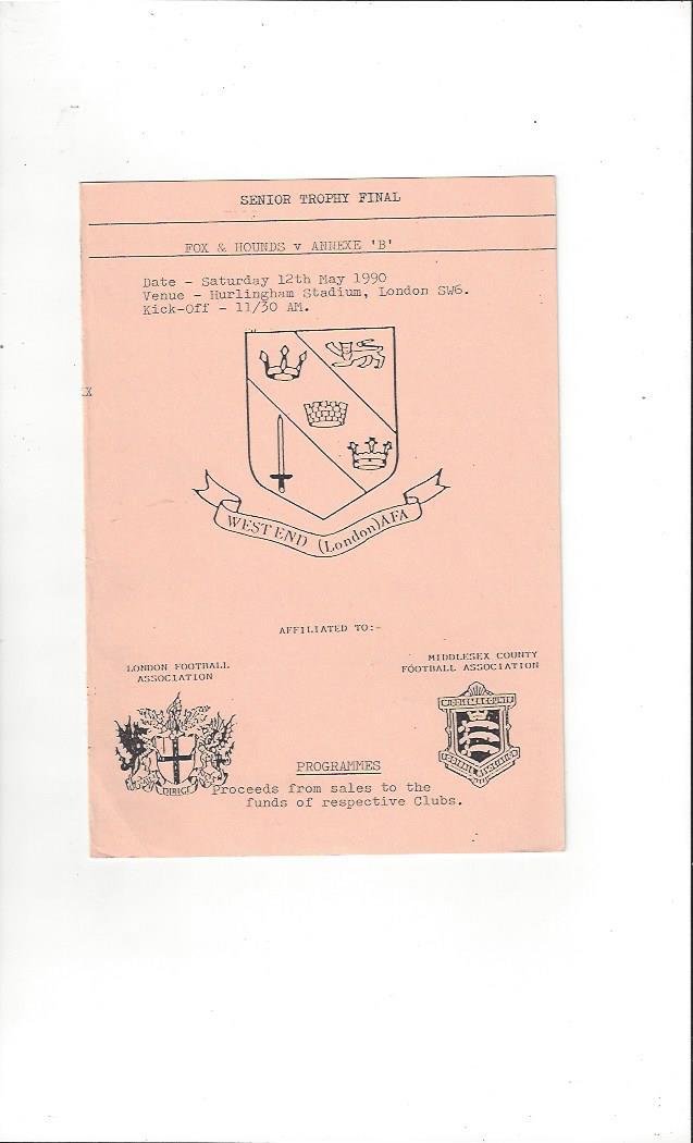 1989/90 Fox & Hounds v Annexe 'B' Snr Trophy Final Football Programme