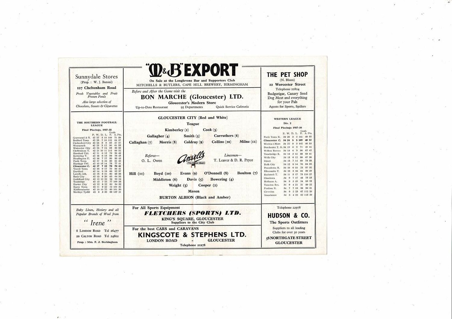 1958/59 Gloucester City v Burton Albion Southern League Cup Football Programme
