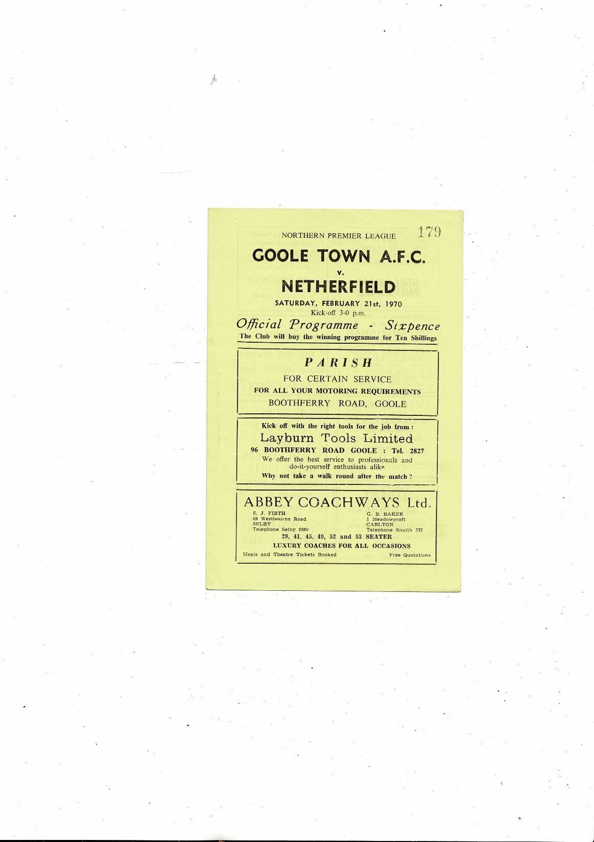 1969/70 Goole Town v Netherfield Northern Premier League Football Programme