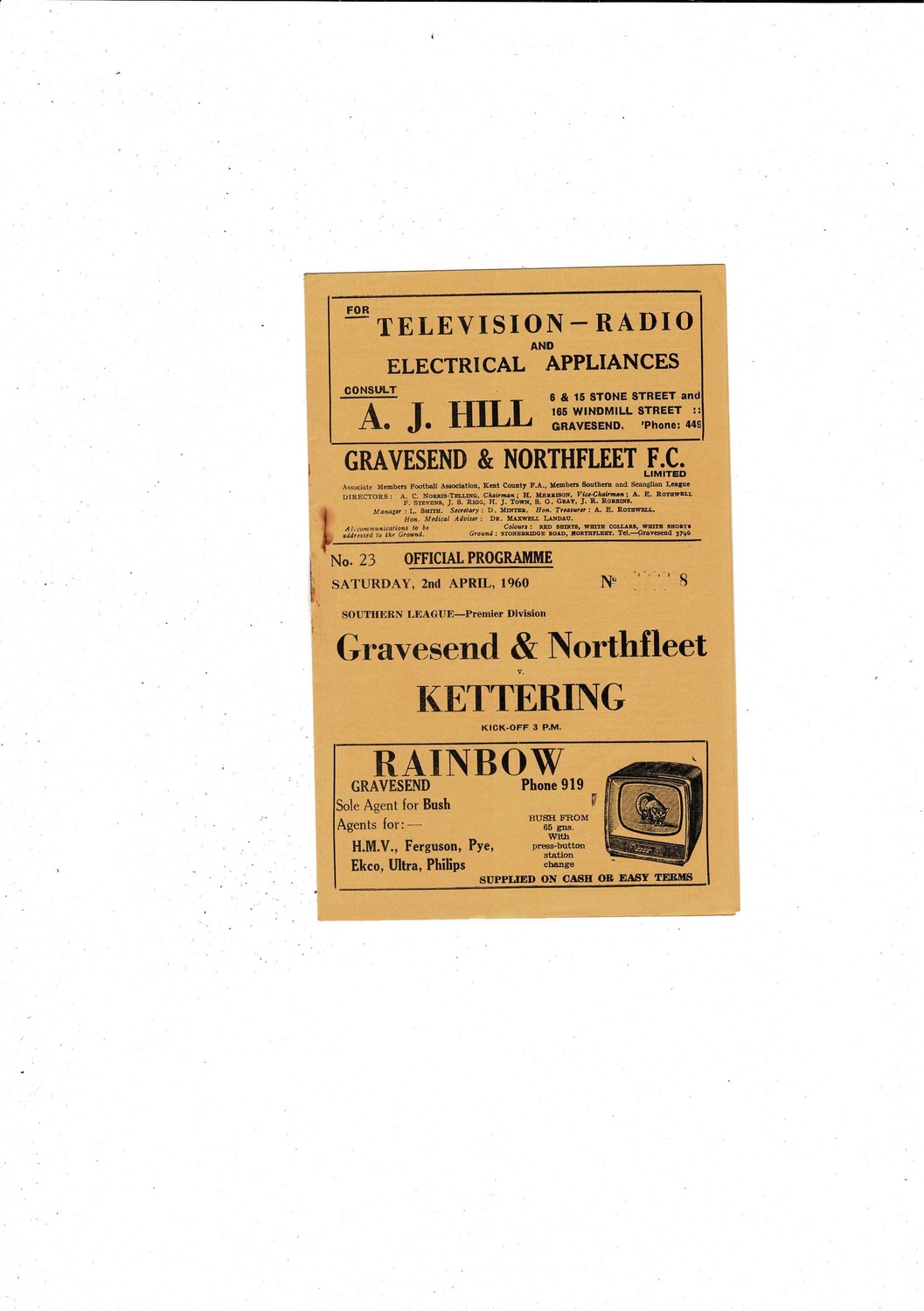 1959/60 Gravesend & Northfleet v Kettering Football Programme Yellow cover