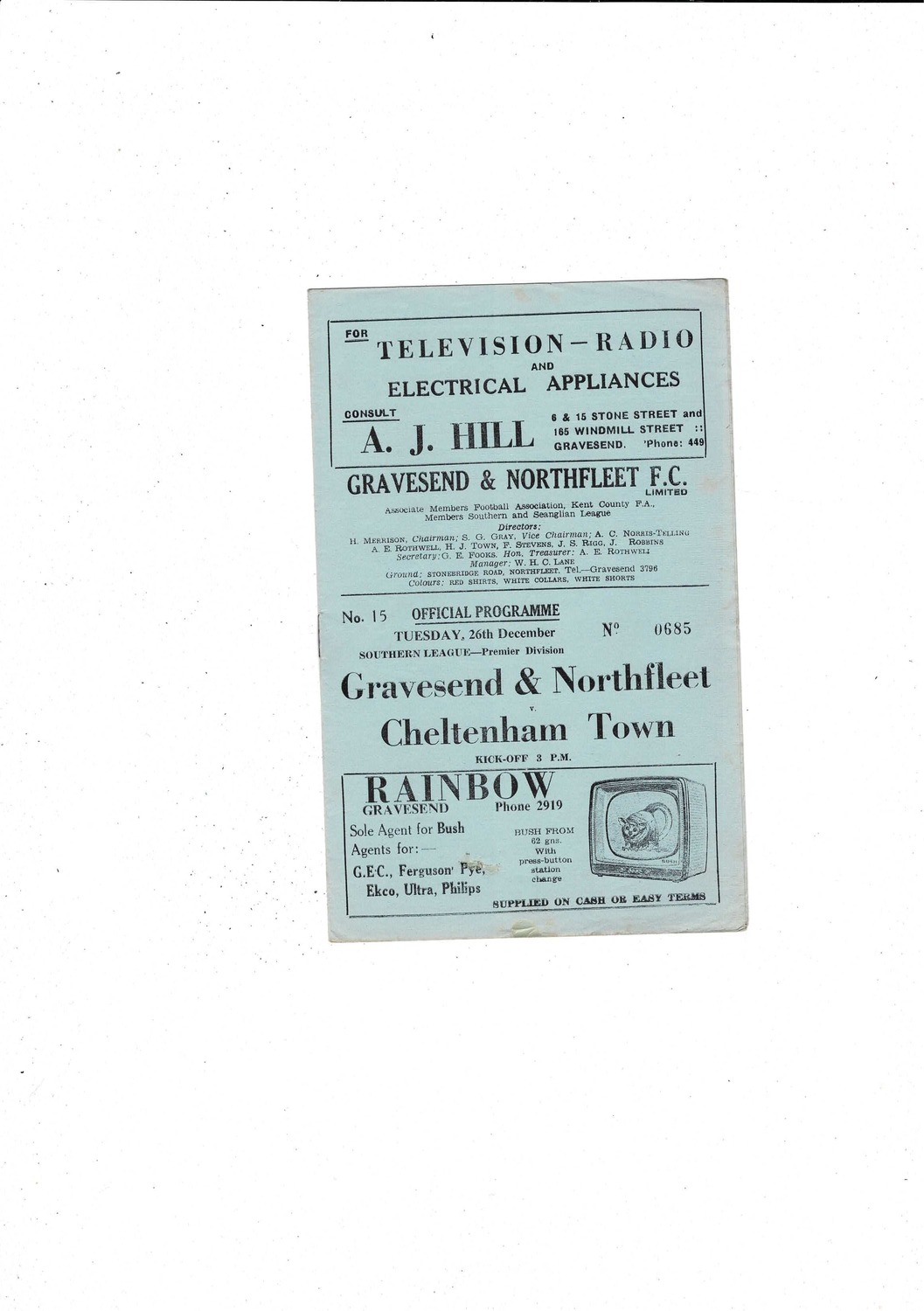 1961/62 Gravesend & Northfleet v Cheltenham Town Football Programme