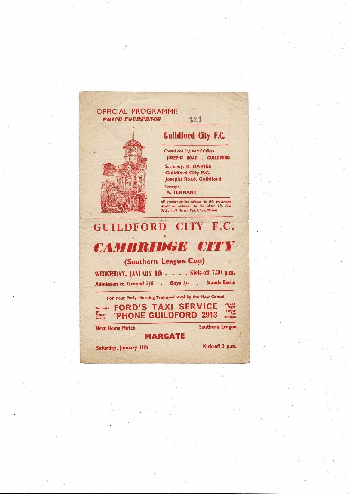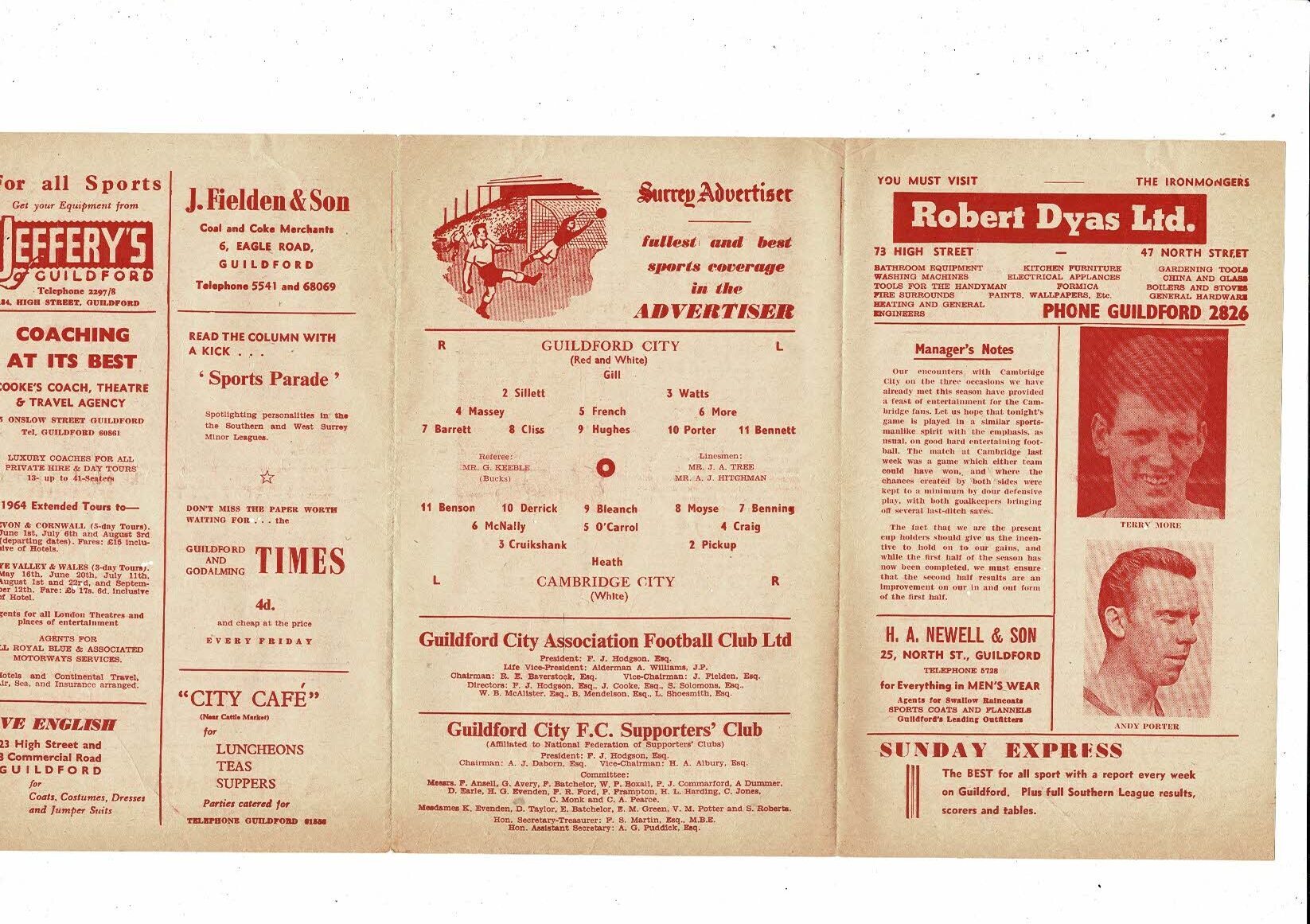 1963/64 Guildford City v Cambridge City Southern League Cup Football Programme