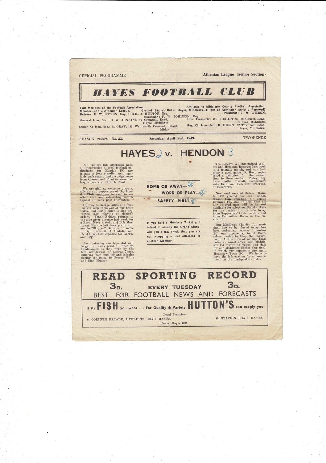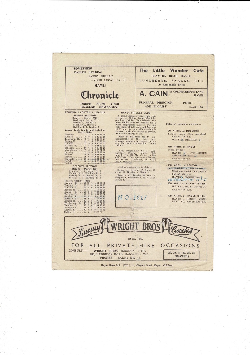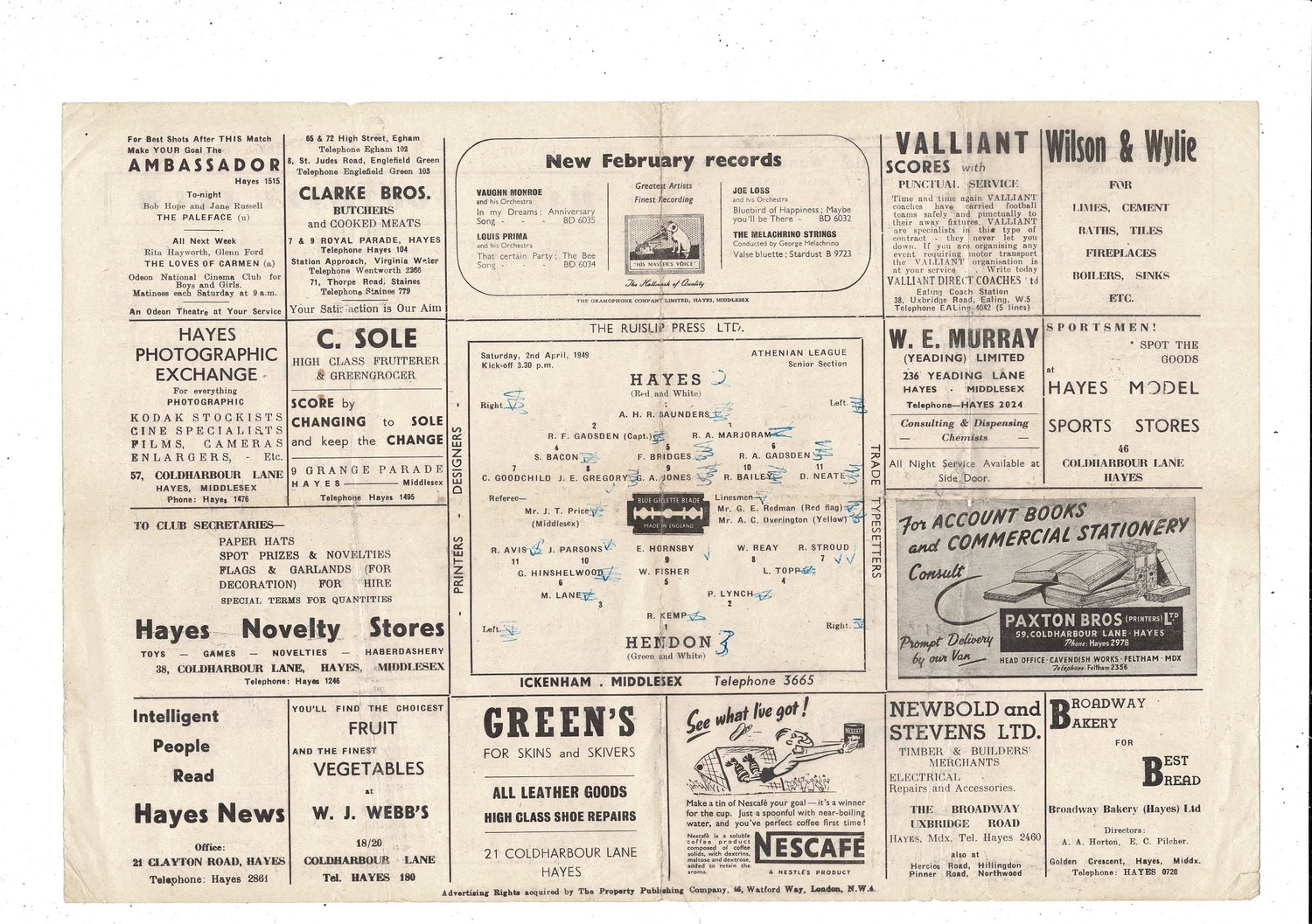 This original 4 page Football Programme is creased & folded with some staining, several tiny tears, score on front & team page with other writing throughout. Please see scans