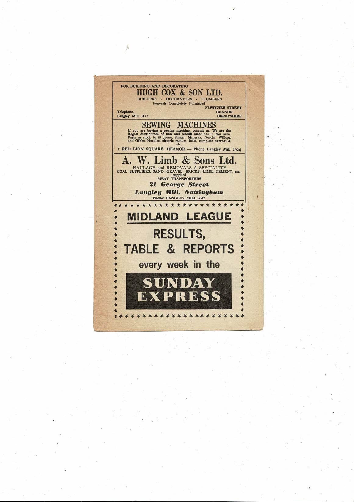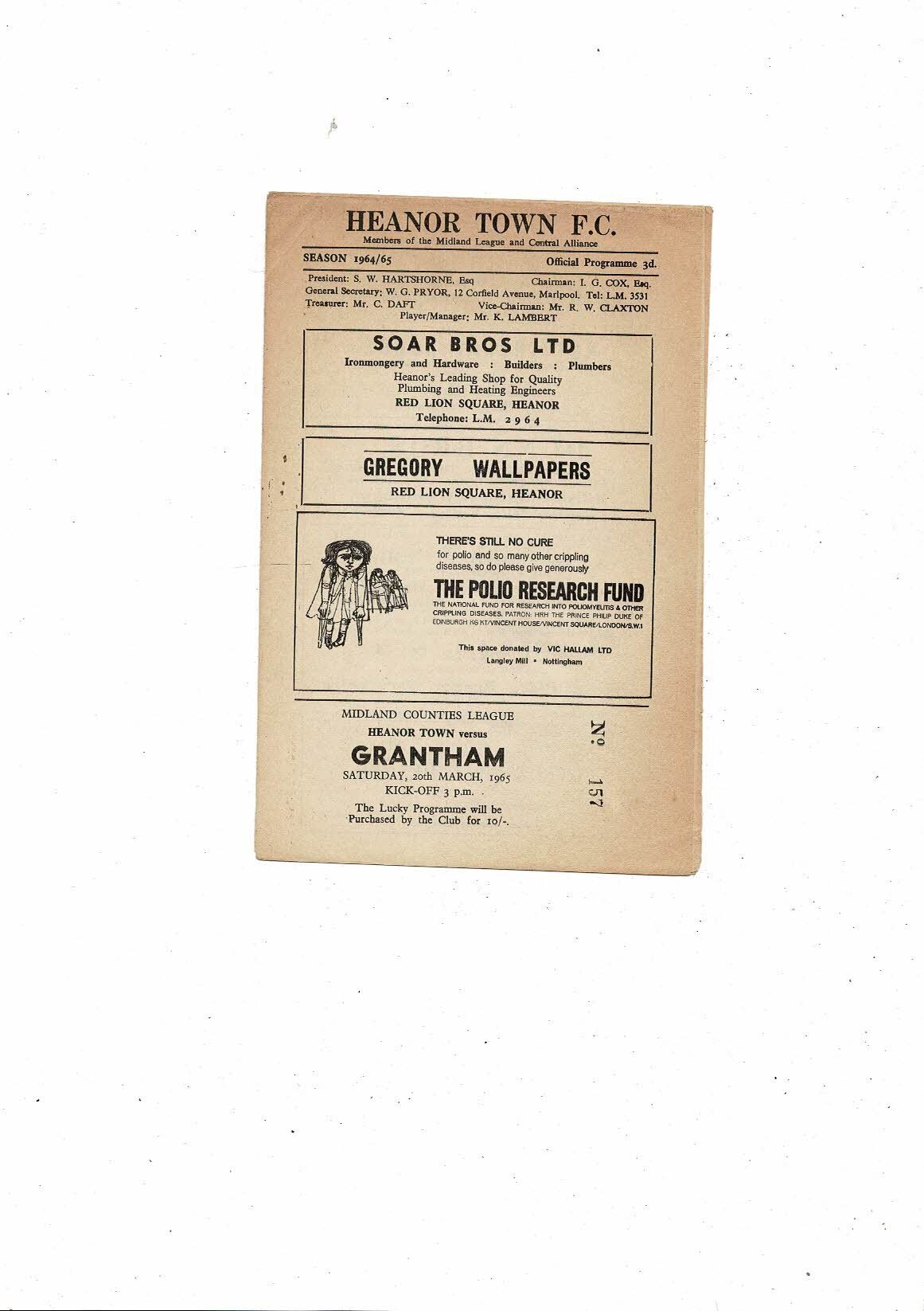1964/65 Heanor Town v Grantham Midland League Football Programme