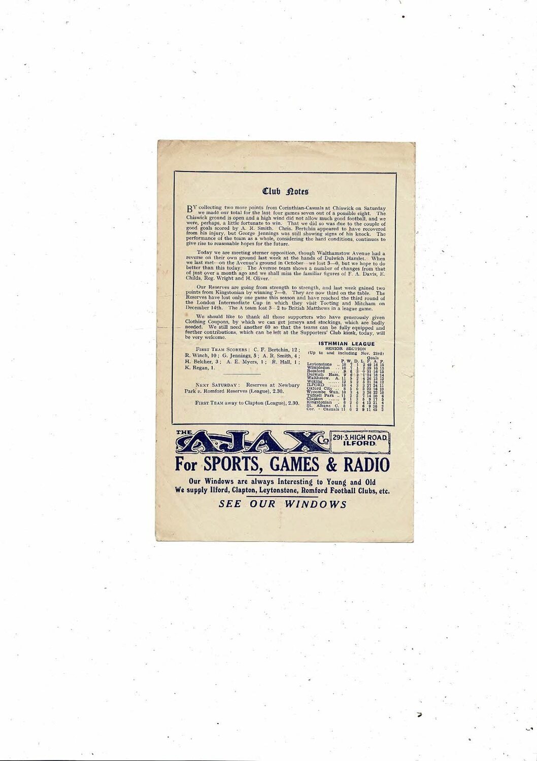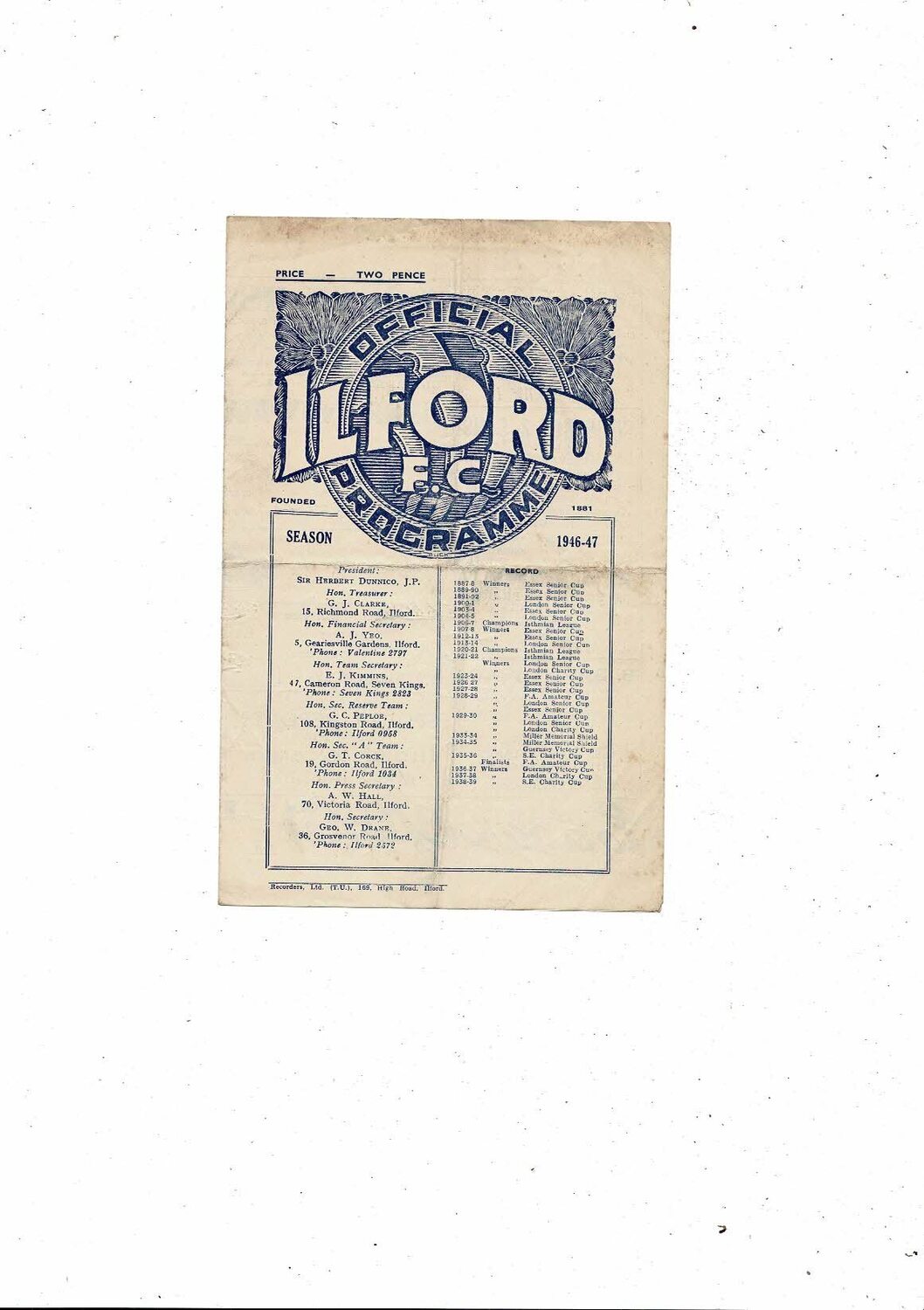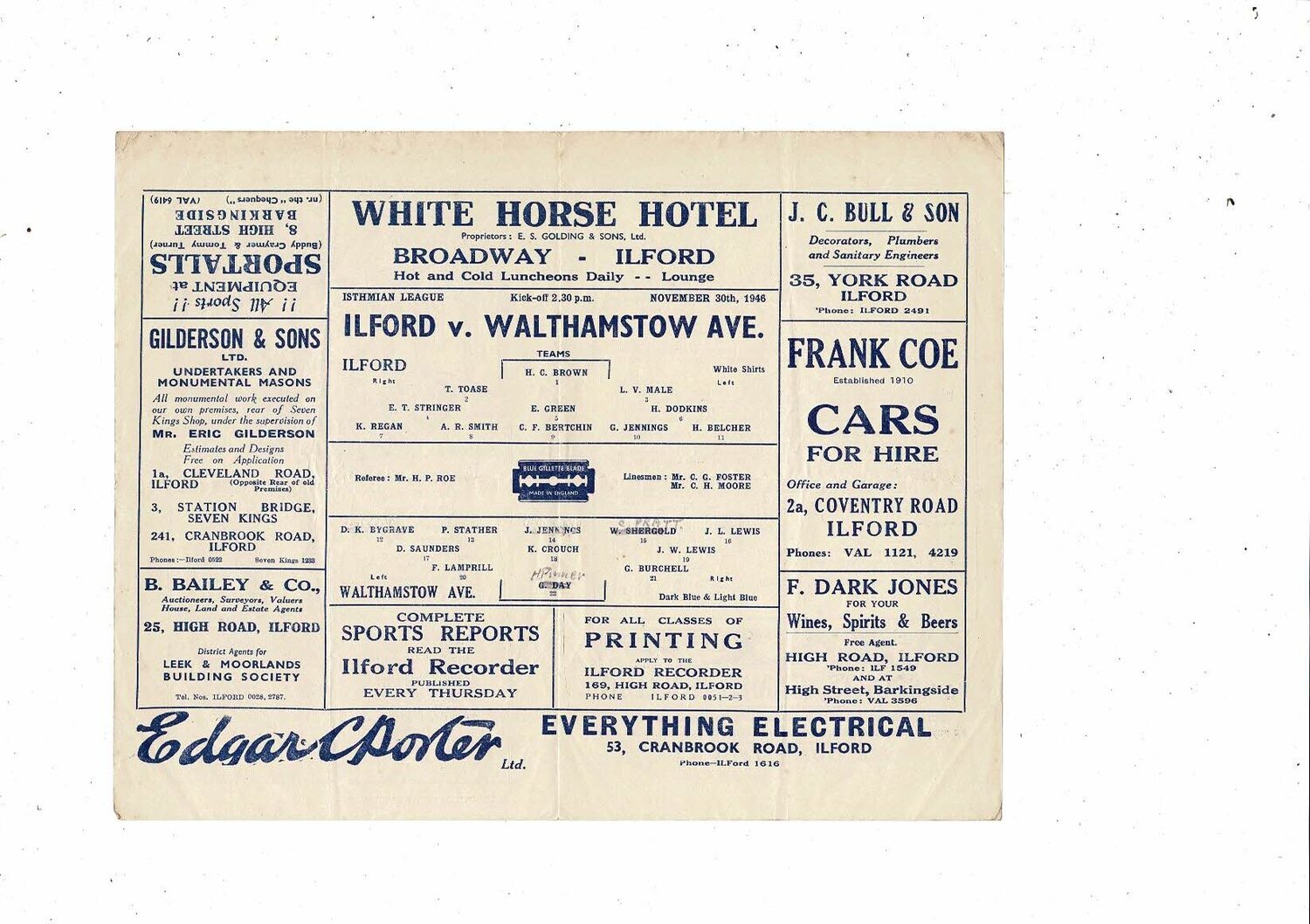 1946/47 Ilford v Walthamstow Isthmian League Football Programme