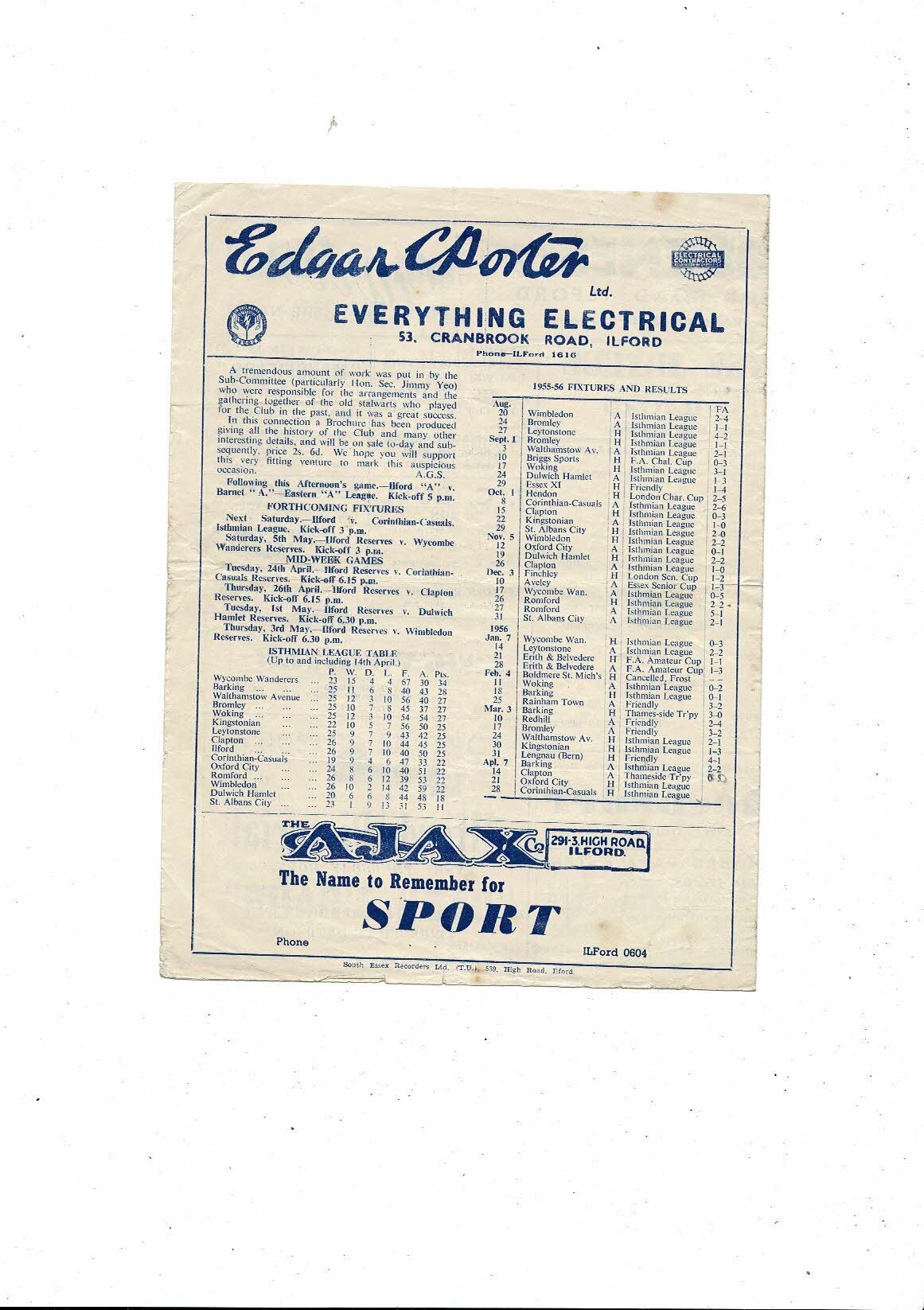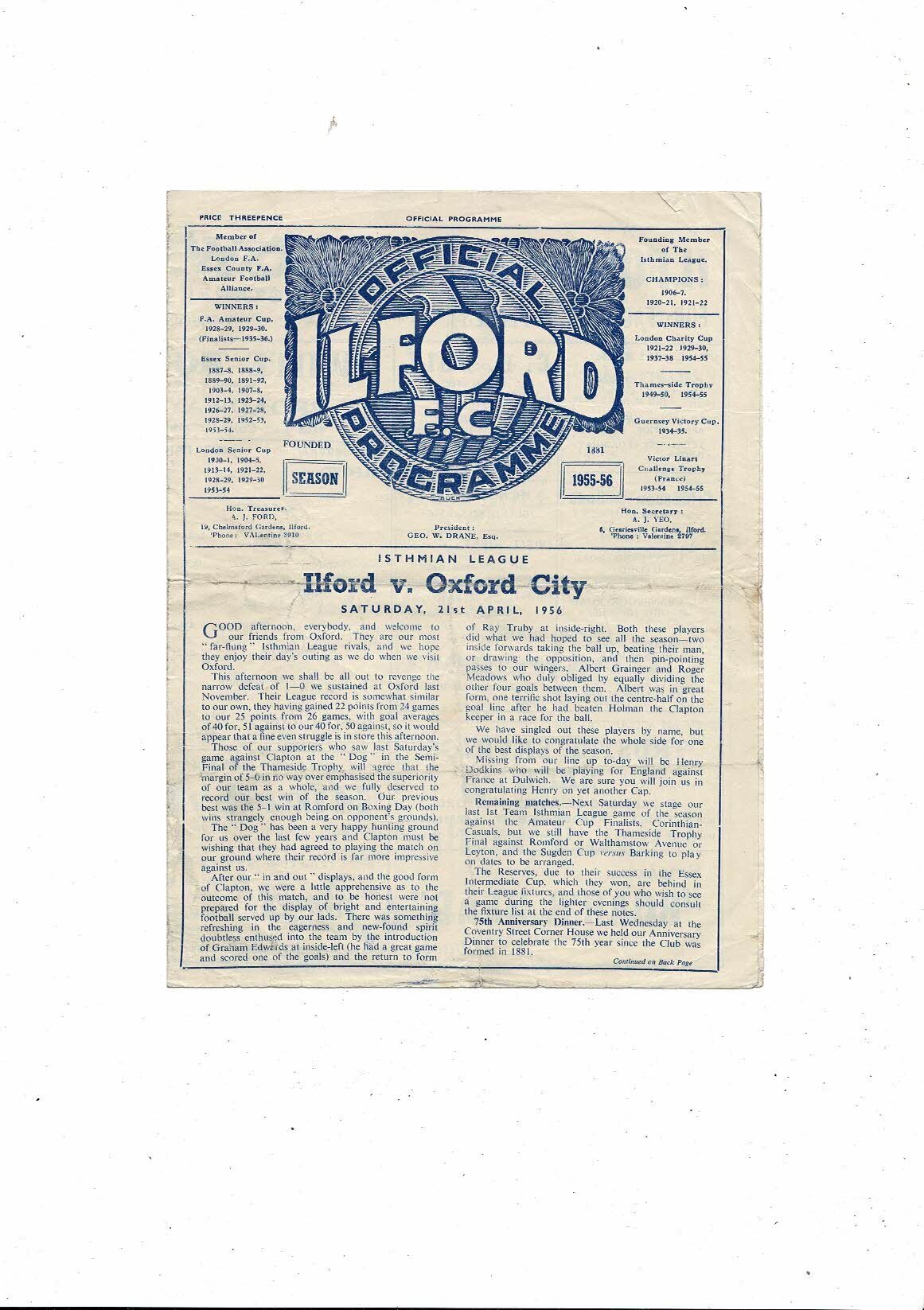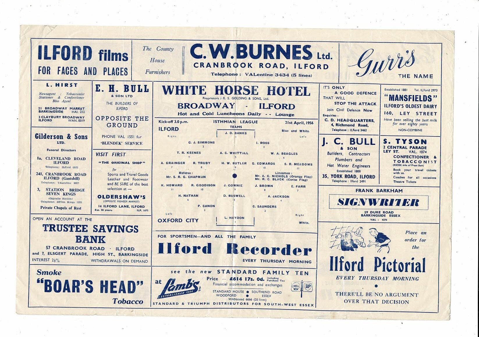 1955/56 Ilford v Oxford City Isthmian League Football Programme